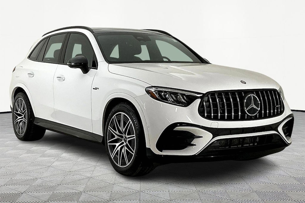 Polar White 2025 Mercedes-Benz GLC 43 AMG® 4MATIC® 9-Speed Automatic I4 AMG® Night Package, Chrome Roof Rails, Exterior Parking Camera Rear, Wheels: 20" AMG® Twin 10-Spoke w/Black Accents.