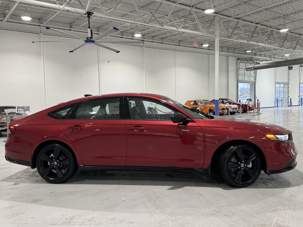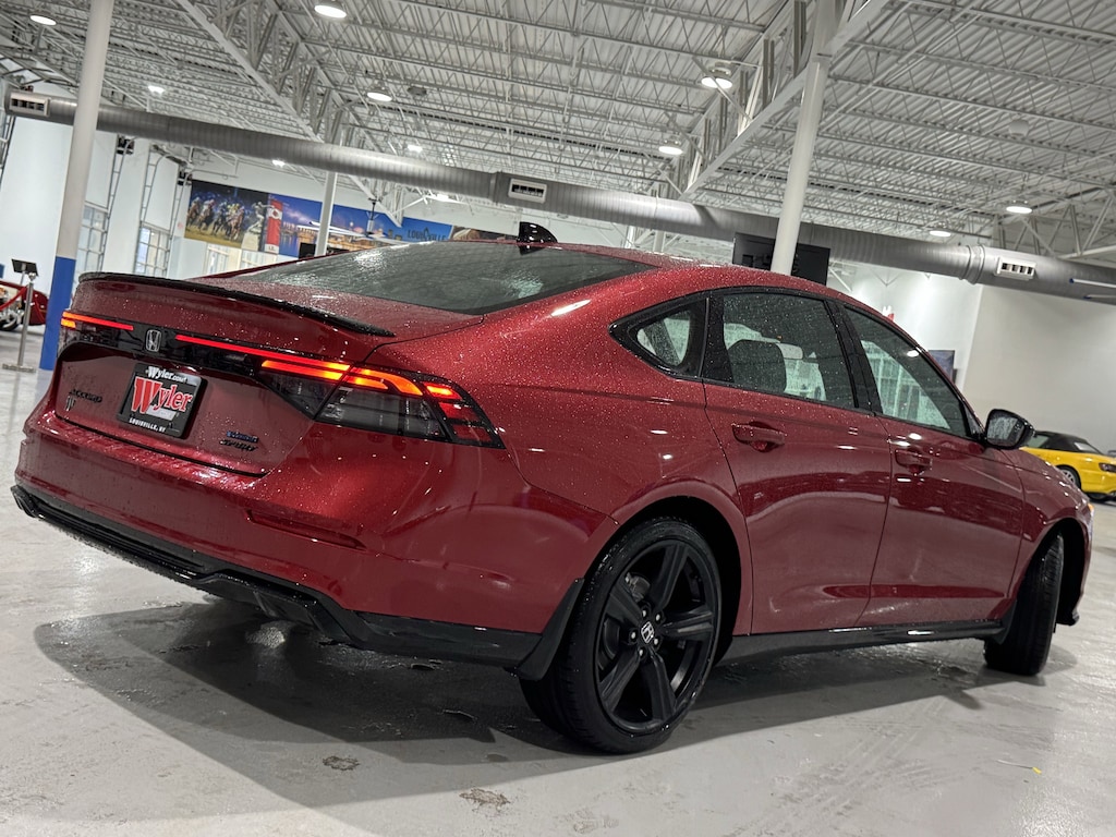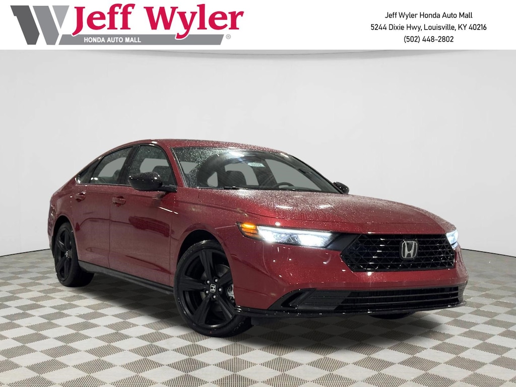 Jeff Wyler Honda Automall is proud to offer this terrific 2026 Honda Accord Hybrid Sport-L in Radiant Red Metallic. Well equipped with: 2.0L I4 DOHC 16V, 4-Wheel Disc Brakes, 8 Speakers, ABS brakes, Adaptive Cruise Control: Adaptive Cruise Control (ACC) with Low-Speed Follow, Air Conditioning, Alloy wheels, AM/FM radio, Apple CarPlay/Android Auto, Auto High-beam Headlights, Automatic temperature control, Blind Spot Information (BSI) System warning, Brake assist, Bumpers: body-color, Compass, Delay-off headlights, Driver door bin, Driver vanity mirror, Dual front impact airbags, Dual front side impact airbags, Electronic Stability Control, Emergency communication system: HondaLink, Exterior Parking Camera Rear, Four wheel independent suspension, Front anti-roll bar, Front Bucket Seats, Front Center Armrest, Front dual zone A/C, Front reading lights, Fully automatic headlights, Heated Front Bucket Seats, Heated front seats, Illuminated entry, Knee airbag, Lane departure: Lane Keeping Assist System (LKAS) active, Leather Shift Knob, Leather steering wheel, Leather-Trimmed Seat Trim, Low tire pressure warning, Memory seat, Occupant sensing airbag, Outside temperature display, Overhead airbag, Overhead console, Panic alarm, Passenger door bin, Passenger vanity mirror, Power door mirrors, Power driver seat, Power moonroof, Power passenger seat, Power steering, Power windows, Radio data system, Radio: 180-Watt Audio System, Rear anti-roll bar, Rear reading lights, Rear seat center armrest, Rear side impact airbag, Rear window defroster, Remote keyless entry, Security system, Speed control, Speed-sensing steering, Speed-Sensitive Wipers, Split folding rear seat, Spoiler, Steering wheel mounted audio controls, Telescoping steering wheel, Tilt steering wheel, Traction control, Trip computer, Variably intermittent wipers, and Wheels: 19" x 8.5J Matte Berlina Black. 46/41 City/Highway MPGWyler Family First Package Includes: NanoCure Appearance Protection: Exterior & Interior Chemical Sealant Applied to Protect Against Environmental Hazards (7 Year Warranty Coverage). Pulse- Rear end Collision Avoidance System Theft Deterrent Strategy gives you 5 Years of Coverage against vehicle Theft, Offering up to a $5,000 benefit.