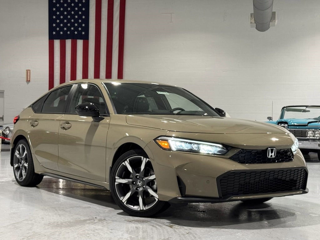 Jeff Wyler Honda Automall is proud to offer this charming 2026 Honda Civic Hybrid Sport Touring in Sand Dune. Well equipped with: 2.0L I4 DOHC 16V, 12 Speakers, 4-Wheel Disc Brakes, ABS brakes, Adaptive Cruise Control: Adaptive Cruise Control (ACC) with Low-Speed Follow, Air Conditioning, Alloy wheels, AM/FM radio, Apple CarPlay/Android Auto, Auto High-beam Headlights, Auto-dimming Rear-View mirror, Automatic temperature control, Blind Spot Information (BSI) System warning, Bose Premium Sound System, Brake assist, Bumpers: body-color, Compass, Delay-off headlights, Driver door bin, Driver vanity mirror, Dual front impact airbags, Dual front side impact airbags, Electronic Stability Control, Emergency communication system: HondaLink, Exterior Parking Camera Rear, Four wheel independent suspension, Front anti-roll bar, Front Bucket Seats, Front Center Armrest, Front dual zone A/C, Front reading lights, Fully automatic headlights, Heated door mirrors, Heated Front Bucket Seats, Heated front seats, Illuminated entry, Knee airbag, Lane departure: Lane Keeping Assist System (LKAS) active, Leather Shift Knob, Leather steering wheel, Leather-Trimmed Seat Trim, Low tire pressure warning, Navigation system: Google Maps, Occupant sensing airbag, Outside temperature display, Overhead airbag, Overhead console, Panic alarm, Passenger door bin, Passenger vanity mirror, Power door mirrors, Power driver seat, Power moonroof, Power passenger seat, Power steering, Power windows, Radio data system, Rain sensing wipers, Rear anti-roll bar, Rear seat center armrest, Rear side impact airbag, Rear window defroster, Rear window wiper, Remote keyless entry, Security system, Speed control, Speed-sensing steering, Split folding rear seat, Steering wheel mounted audio controls, Tachometer, Telescoping steering wheel, Tilt steering wheel, Traction control, Trip computer, Turn signal indicator mirrors, Variably intermittent wipers, and Wheels: 18" Alloy w/Matte Shark Gray Inserts. 50/45 City/Highway MPGWyler Family First Package Includes: NanoCure Appearance Protection: Exterior & Interior Chemical Sealant Applied to Protect Against Environmental Hazards (7 Year Warranty Coverage). Pulse- Rear end Collision Avoidance System Theft Deterrent Strategy gives you 5 Years of Coverage against vehicle Theft, Offering up to a $5,000 benefit.