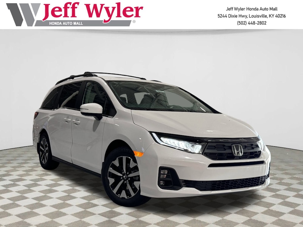 Jeff Wyler Honda Automall is honored to offer this gorgeous 2026 Honda Odyssey EX-L in Platinum White Pearl. Well equipped with: 18" Machine-Finished Alloy Wheels, 3rd row seats: split-bench, 4-Wheel Disc Brakes, 7 Speakers, ABS brakes, Adaptive Cruise Control: Adaptive Cruise Control (ACC) with Low-Speed Follow, Air Conditioning, Alloy wheels, AM/FM radio: SiriusXM, Anti-whiplash front head restraints, Apple CarPlay/Android Auto, Auto High-beam Headlights, Auto-dimming Rear-View mirror, Automatic temperature control, Blind Spot Information (BSI) System warning, Brake assist, Bumpers: body-color, Delay-off headlights, Driver door bin, Driver vanity mirror, Driver's Seat Mounted Armrest, Dual front impact airbags, Dual front side impact airbags, Electronic Stability Control, Exterior Parking Camera Rear, Four wheel independent suspension, Front anti-roll bar, Front Bucket Seats, Front dual zone A/C, Front fog lights, Front reading lights, Fully automatic headlights, Garage door transmitter: HomeLink, Heated door mirrors, Heated Front Bucket Seats, Heated front seats, Illuminated entry, Knee airbag, Lane departure: Lane Keeping Assist System (LKAS) active, Leather steering wheel, Leather-Trimmed Seats, Low tire pressure warning, Memory seat, Occupant sensing airbag, Outside temperature display, Overhead airbag, Overhead console, Panic alarm, Passenger door bin, Passenger seat mounted armrest, Passenger vanity mirror, Power door mirrors, Power driver seat, Power Liftgate, Power moonroof, Power passenger seat, Power steering, Power windows, Radio data system, Radio: 160-Watt AM/FM/HD/SiriusXM Audio System, Rear air conditioning, Rear anti-roll bar, Rear reading lights, Rear seat center armrest, Rear window defroster, Rear window wiper, Reclining 3rd row seat, Remote keyless entry, Security system, Speed control, Speed-sensing steering, Speed-Sensitive Wipers, Split folding rear seat, Spoiler, Steering wheel mounted audio controls, Tachometer, Telescoping steering wheel, Tilt steering wheel, Traction control, Trip computer, Turn signal indicator mirrors, and Variably intermittent wipers. 19/28 City/Highway MPGWyler Family First Package Includes: NanoCure Appearance Protection: Exterior & Interior Chemical Sealant Applied to Protect Against Environmental Hazards (7 Year Warranty Coverage). Pulse- Rear end Collision Avoidance System Theft Deterrent Strategy gives you 5 Years of Coverage against vehicle Theft, Offering up to a $5,000 benefit.