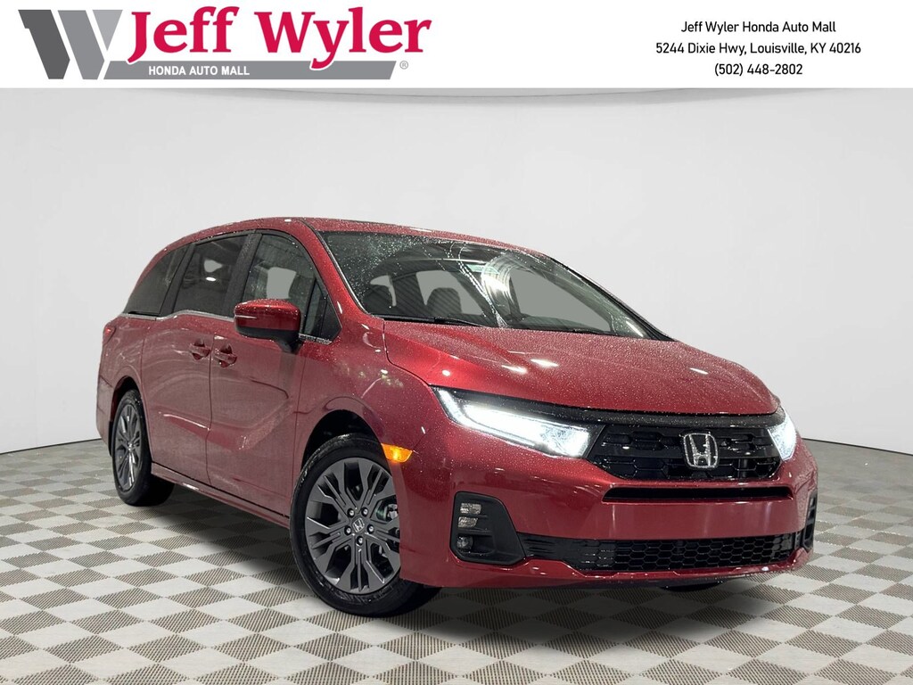 Jeff Wyler Honda Automall is honored to offer this terrific 2026 Honda Odyssey Touring in Radiant Red Metallic II. Well equipped with: 3rd row seats: split-bench, 4-Wheel Disc Brakes, 7 Speakers, ABS brakes, Adaptive Cruise Control: Adaptive Cruise Control (ACC) with Low-Speed Follow, Air Conditioning, Alloy wheels, AM/FM radio: SiriusXM, Anti-whiplash front head restraints, Apple CarPlay/Android Auto, Auto High-beam Headlights, Auto-dimming Rear-View mirror, Automatic temperature control, Blind Spot Information (BSI) System warning, Brake assist, Bumpers: body-color, Compass, Delay-off headlights, Driver door bin, Driver vanity mirror, Driver's Seat Mounted Armrest, Dual front impact airbags, Dual front side impact airbags, Electronic Stability Control, Emergency communication system: HondaLink, Exterior Parking Camera Rear, Four wheel independent suspension, Front anti-roll bar, Front Bucket Seats, Front dual zone A/C, Front fog lights, Front reading lights, Fully automatic headlights, Garage door transmitter: HomeLink, Heated door mirrors, Heated Front Bucket Seats, Heated front seats, Illuminated entry, Knee airbag, Lane departure: Lane Keeping Assist System (LKAS) active, Leather steering wheel, Leather-Trimmed Seats w/Piping, Low tire pressure warning, Memory seat, Navigation system: Honda Satellite-Linked Navigation System, Occupant sensing airbag, Outside temperature display, Overhead airbag, Overhead console, Panic alarm, Passenger door bin, Passenger seat mounted armrest, Passenger vanity mirror, Power door mirrors, Power driver seat, Power Liftgate, Power moonroof, Power passenger seat, Power steering, Power windows, Radio data system, Radio: 160-Watt AM/FM/HD/SiriusXM Audio System, Rear air conditioning, Rear anti-roll bar, Rear audio controls, Rear reading lights, Rear seat center armrest, Rear window defroster, Rear window wiper, Reclining 3rd row seat, Remote keyless entry, Security system, Speed control, Speed-sensing steering, Speed-Sensitive Wipers, Split folding rear seat, Spoiler, Steering wheel mounted audio controls, Tachometer, Telescoping steering wheel, Tilt steering wheel, Traction control, Trip computer, Turn signal indicator mirrors, Variably intermittent wipers, and Wheels: 19" Gray Alloy. 19/28 City/Highway MPGWyler Family First Package Includes: NanoCure Appearance Protection: Exterior & Interior Chemical Sealant Applied to Protect Against Environmental Hazards (7 Year Warranty Coverage). Pulse- Rear end Collision Avoidance System Theft Deterrent Strategy gives you 5 Years of Coverage against vehicle Theft, Offering up to a $5,000 benefit.