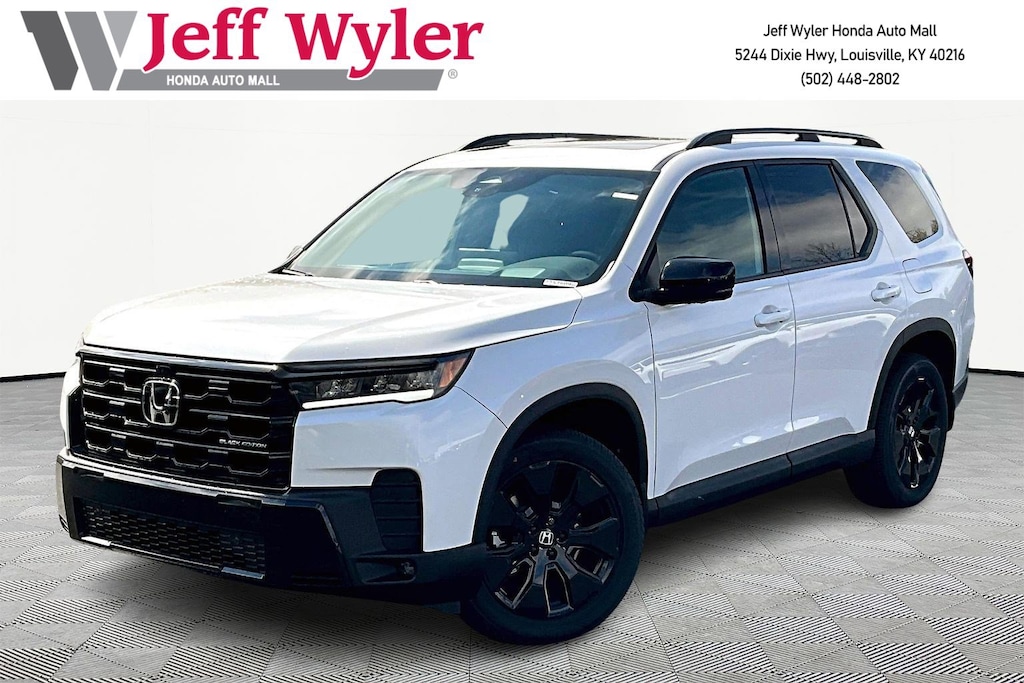 Jeff Wyler Honda Automall is honored to offer this wonderful 2026 Honda Pilot Black Edition in Platinum White Pearl. Well equipped with: AWD, 12 Speakers, 3rd row seats: split-bench, 4-Wheel Disc Brakes, ABS brakes, Adaptive Cruise Control: Adaptive Cruise Control (ACC) with Low-Speed Follow, Air Conditioning, Alloy wheels, Apple CarPlay/Android Auto, Auto High-beam Headlights, Auto-dimming door mirrors, Auto-dimming Rear-View mirror, Automatic temperature control, Blind Spot Information (BSI) System warning, Bose Premium Sound System, Brake assist, Bumpers: body-color, Compass, Delay-off headlights, Driver door bin, Driver vanity mirror, Dual front impact airbags, Dual front side impact airbags, Electronic Stability Control, Emergency communication system: HondaLink, Exterior Parking Camera Rear, Four wheel independent suspension, Front anti-roll bar, Front Bucket Seats, Front Center Armrest, Front dual zone A/C, Front fog lights, Front reading lights, Fully automatic headlights, Garage door transmitter: HomeLink, Heads-Up Display, Heated and Ventilated Front Bucket Seats, Heated door mirrors, Heated front seats, Heated rear seats, Heated steering wheel, HondaLink, HondaLink Subscription Services, Illuminated entry, Knee airbag, Lane departure: Lane Keeping Assist System (LKAS) active, Low tire pressure warning, Memory seat, Navigation system: Google Maps, Occupant sensing airbag, Outside temperature display, Overhead airbag, Overhead console, Panic alarm, Passenger door bin, Passenger vanity mirror, Perforated Leather-Trimmed Seat Trim, Power door mirrors, Power driver seat, Power Liftgate, Power moonroof, Power passenger seat, Power steering, Power windows, Radio data system, Rain sensing wipers, Rear air conditioning, Rear anti-roll bar, Rear reading lights, Rear seat center armrest, Rear window defroster, Rear window wiper, Reclining 3rd row seat, Remote keyless entry, Security system, Speed control, Speed-sensing steering, Speed-Sensitive Wipers, Split folding rear seat, Spoiler, Steering wheel mounted audio controls, Tachometer, Telescoping steering wheel, Tilt steering wheel, Traction control, Trip computer, Turn signal indicator mirrors, Variably intermittent wipers, Ventilated front seats, and Wheels: 20" Gloss Black with Black Lug Nuts.Wyler Family First Package Includes: NanoCure Appearance Protection: Exterior & Interior Chemical Sealant Applied to Protect Against Environmental Hazards (7 Year Warranty Coverage). Pulse- Rear end Collision Avoidance System Theft Deterrent Strategy gives you 5 Years of Coverage against vehicle Theft, Offering up to a $5,000 benefit.