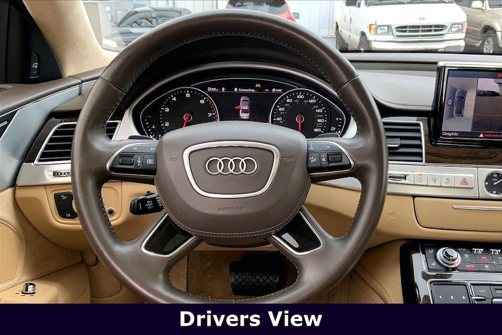 It delivers style and power in a single package! The engine breathes better thanks to a turbocharger, improving both performance and economy. This 4 door, 5 passenger sedan is still under 75,000 miles! Audi infused the interior with top shelf amenities, such as: leather upholstery, power trunk closing assist, and power front seats. Smooth gearshifts are achieved thanks to the powerful 8 cylinder engine, and load leveling rear suspension maintains a comfortable ride.