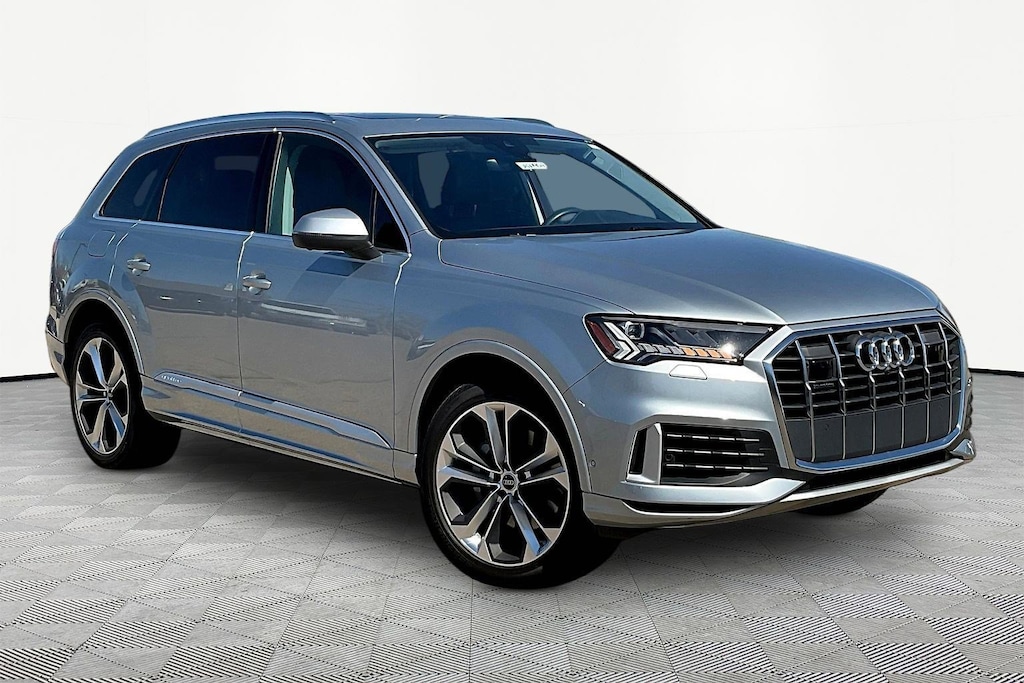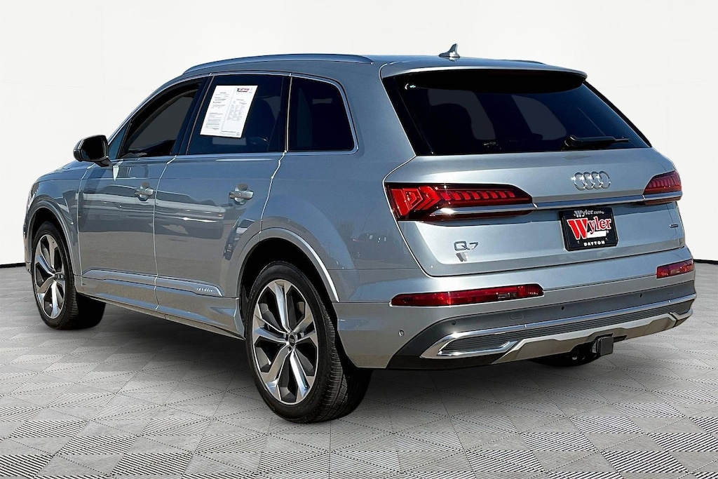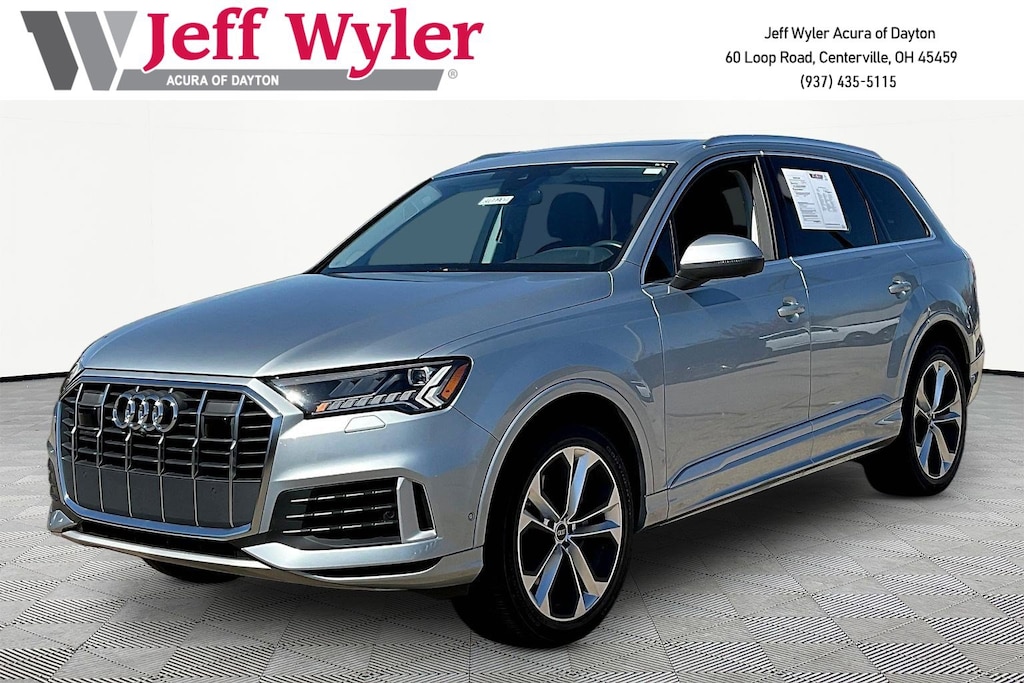 Jeff Wyler Acura of Dayton is excited to offer this terrific 2023 Audi Q7 55 Premium Plus in Satellite Silver Metallic. 10 Speakers, 3.204 Axle Ratio, 3rd row seats: bench, 4-Wheel Disc Brakes, ABS brakes, Air Conditioning, Alloy wheels, AM/FM radio: SiriusXM w/ 360L, Auto High-beam Headlights, Auto-dimming door mirrors, Auto-dimming Rear-View mirror, Automatic temperature control, Brake assist, Bumpers: body-color, Compass, Delay-off headlights, Driver door bin, Driver vanity mirror, Dual front impact airbags, Dual front side impact airbags, Electronic Stability Control, Emergency communication system: Audi connect CARE, Exterior Parking Camera Rear, Four wheel independent suspension, Front anti-roll bar, Front Bucket Seats, Front Center Armrest, Front dual zone A/C, Front fog lights, Front reading lights, Fully automatic headlights, Garage door transmitter: HomeLink, Genuine wood door panel insert, Heated door mirrors, Heated Front Bucket Seats, Heated front seats, Illuminated entry, Leather Seating Surfaces, Leather Shift Knob, Leather steering wheel, Low tire pressure warning, Memory seat, Navigation system: Audi MMI Navigation plus with Touch Response, Occupant sensing airbag, Outside temperature display, Overhead airbag, Overhead console, Panic alarm, Passenger door bin, Passenger vanity mirror, Power door mirrors, Power driver seat, Power Liftgate, Power moonroof: Panoramic, Power passenger seat, Power steering, Power windows, Radio data system, Radio: Audi Sound System, Rain sensing wipers, Rear air conditioning, Rear anti-roll bar, Rear fog lights, Rear reading lights, Rear seat center armrest, Rear side impact airbag, Rear window defroster, Rear window wiper, Reclining 3rd row seat, Remote keyless entry, Roof rack: rails only, Security system, Speed control, Speed-sensing steering, Split folding rear seat, Spoiler, Steering wheel memory, Steering wheel mounted audio controls, Tachometer, Telescoping steering wheel, Tilt steering wheel, Traction control, Trip computer, Turn signal indicator mirrors, Variably intermittent wipers, and Wheels: 19" 5-Arm-Star Design Our PRE-OWNED vehicles are put through a rigorous 167- POINT QUALITY ASSURANCE INSPECTION along with an average amount of over $1,400.00 SPENT to recondition each vehicle so we can be sure to deliver you the highest quality vehicle like you deserve! ***ONLINE PRICE DOES NOT INCLUDE WYLER FAMILY FIRST PACKAGE*** CARFAX One-Owner.