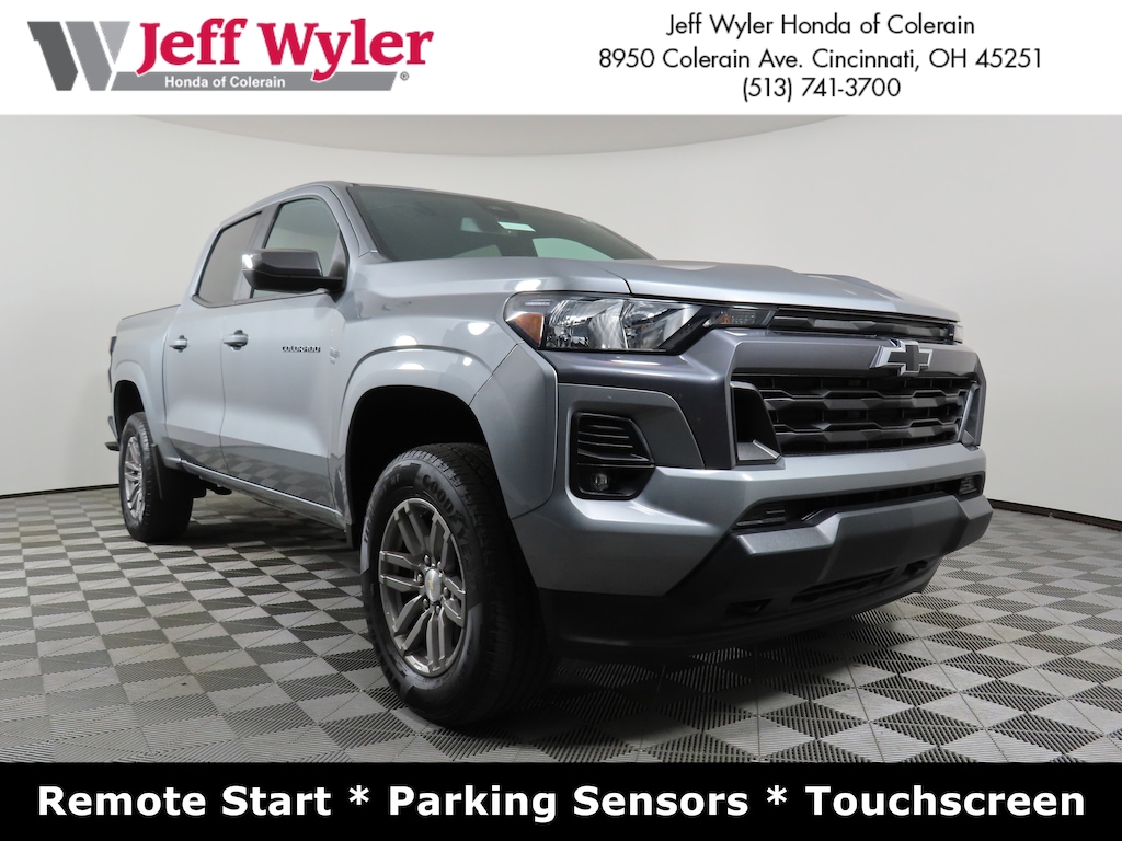 Jeff Wyler Honda of Colerain is excited to offer this great-looking 2023 Chevrolet Colorado LT in Sterling Gray Metallic. Well equipped with: Heavy-Duty Trailering Package (Integrated Trailer Brake Controller), LT Convenience Package (Driver & Front Passenger Illuminated Visors, Dual-Zone Automatic Air Conditioning, Electronic Automatic Cruise Control, EZ-Lift & Lower Tailgate, Front LED Fog Lamps, Manual Rear-Sliding Window, Rear-Window Electric Defogger, StowFlex Tailgate Storage Compartment, Tailgate Keyed Cylinder Lock, and Tilt & Telescoping Steering Column), LT Convenience Package II (8-Way Power Driver Seat Adjuster, Heated Driver & Front Passenger Seats, Inside Rear-View Auto-Dimming Mirror, Power Driver Lumbar Control Seat Adjuster, Remote Vehicle Starter System, and Wireless Charging), Preferred Equipment Group 4LT (Automatic Emergency Braking, Chevy Safety Assist, Following Distance Indicator, Forward Collision Alert, Front Pedestrian & Bicyclist Braking, IntelliBeam Automatic High Beam On/Off, and Lane Keep Assist w/Lane Departure Warning), Safety Package (Blind Zone Steering Assist, Heated Power-Adjustable Outside Mirrors, Rear Cross Traffic Braking, and Rear Park Assist), 220 Amp Generator, 3.42 Rear Axle Ratio, 4-Way Manual Passenger Seat Adjuster, 4-Wheel Disc Brakes, 6 Speakers, 6-Speaker Audio System Feature, 6-Way Manual Driver Seat Adjuster, ABS brakes, Air Conditioning, Alloy wheels, AM/FM radio: SiriusXM, Appearance Engine Cover, Apple CarPlay/Android Auto, Auto High-beam Headlights, Automatic Locking Rear Differential, Black Bowtie Emblem (LPO), Black Spray-On Bedliner w/Chevrolet Logo, Brake assist, Bumpers: body-color, Cloth Seat Trim, Compass, Delay-off headlights, Driver door bin, Driver vanity mirror, Dual front impact airbags, Dual front side impact airbags, Electronic Stability Control, Front anti-roll bar, Front Bucket Seats, Front Center Armrest, Front reading lights, Front wheel independent suspension, Illuminated entry, Low tire pressure warning, Navigation System, Noise Control Enhancement (DISC), Occupant sensing airbag, Outside temperature display, Overhead airbag, Overhead console, Panic alarm, Passenger door bin, Passenger Seatback Map Pocket, Passenger vanity mirror, Power door mirrors, Power steering, Power windows, Radio data system, Radio: 11.3" Diagonal Advanced Color LCD Display, Rear reading lights, Rear step bumper, Remote keyless entry, Security system, SiriusXM Radio, Speed-sensing steering, Split folding rear seat, Steering Wheel Mounted Audio Controls, Steering wheel mounted audio controls, Tachometer, Tilt steering wheel, Traction control, Trip computer, Variably intermittent wipers, Wheels: 17" x 8" Argent Metallic Aluminum, and Wireless Phone Projection.