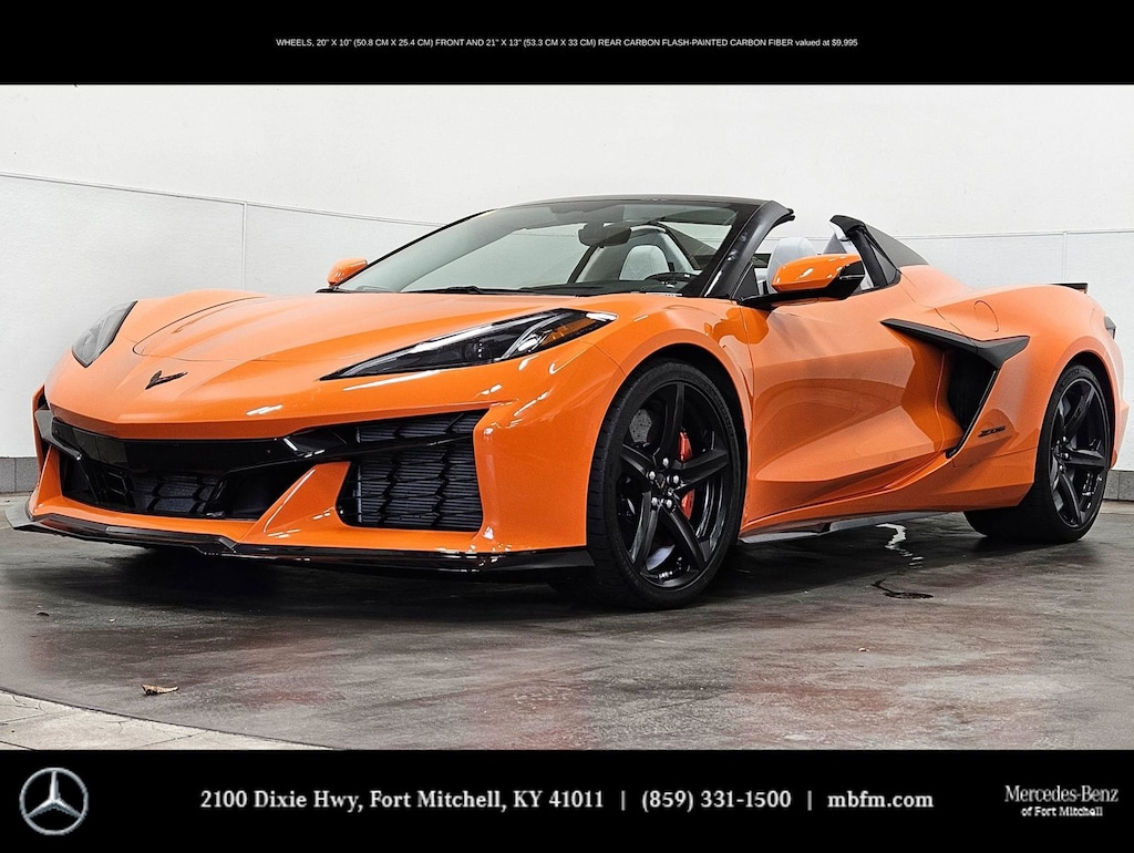 Amplify Orange Tintcoat 2023 Chevrolet Corvette Z06 3LZ RWD 8-Speed Dual Clutch 5.5L V8 CARBON CERAMIC BRAKES, GROUND EFFECTS - CARBON FIBER, CARBON FLASH PAINTED NACELLES AND ROOF, CONVERTIBLE TOP, EXHAUST TIPS, BLACK, 2 Cargo Nets, 8-Way Power Driver Seat Adjuster, 8-Way Power Passenger Seat Adjuster, Apple CarPlay®/Android Auto®, Automatic Leveling System Headlamp Control, Bose Performance Series Sound System w/14 Speakers, Carbon Fiber/Sueded Microfiber-Wrap Steering Wheel, Convertible HardTop, Convertible roof lining, Custom Leather Wrapped Interior Package, Driver Power Bolster Seat Adjuster, Electrical Theft Deterrent System, Front Lift Adjustable Height w/Memory, Fully automatic headlights, GT2 Bucket Seats, HD Front & Rear Vision Cameras, Heads-Up Display, Heated & Vented Driver & Passenger Seats, Heated Steering Wheel, Memory Driver & Passenger Convenience Package, Napa Lthr Seating Surfaces w/Perforated Inserts, Orange Seat Belt Color, Orange-Painted Calipers, Passenger Power Bolster Seat Adjuster, Performance Data & Video Recorder, Power Driver Lumbar Control Seat Adjuster, Power Passenger Lumbar Control Seat Adjuster, Power-Adjustable Outside Heated Mirrors, Preferred Equipment Group 3LZ, Rear Cross Traffic Alert, Side Blind Zone Alert, Stealth Interior Trim Package, Sueded Microfiber-Wrapped Upper Interior Trim Pkg, Universal Home Remote, Vehicle Inclination Theft Deterrent Sensor, Vehicle Interior Movement Theft Deterrent Sensor, Wheels: 20" x 10" Fr/21" x 13" Rr Carbon Flash, Wireless Charging for Devices.