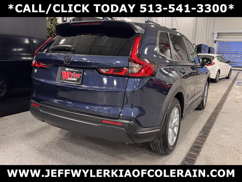 Jeff Wyler Kia of Colerain is delighted to offer this terrific 2025 Honda CR-V EX-L in Still Night Pearl. 4-Wheel Disc Brakes, 8 Speakers, ABS brakes, Adaptive Cruise Control: Adaptive Cruise Control (ACC) with Low-Speed Follow, Air Conditioning, Alloy wheels, AM/FM radio: SiriusXM, Auto High-beam Headlights, Auto-dimming Rear-View mirror, Automatic temperature control, Blind Spot Information (BSI) System warning, Brake assist, Bumpers: body-color, Compass, Delay-off headlights, Driver door bin, Driver vanity mirror, Dual front impact airbags, Dual front side impact airbags, Electronic Stability Control, Exterior Parking Camera Rear, Four wheel independent suspension, Front anti-roll bar, Front Bucket Seats, Front Center Armrest, Front dual zone A/C, Front reading lights, Fully automatic headlights, Heated door mirrors, Heated Front Bucket Seats, Heated front seats, Illuminated entry, Knee airbag, Leather Seat Trim, Leather Shift Knob, Leather steering wheel, Low tire pressure warning, Memory seat, Occupant sensing airbag, Outside temperature display, Overhead airbag, Overhead console, Panic alarm, Passenger door bin, Passenger vanity mirror, Power door mirrors, Power driver seat, Power Liftgate, Power moonroof, Power passenger seat, Power steering, Power windows, Radio data system, Radio: 320-Watt AM/FM/HD/SiriusXM Audio System, Rear anti-roll bar, Rear reading lights, Rear seat center armrest, Rear side impact airbag, Rear window defroster, Rear window wiper, Remote keyless entry, Security system, Speed control, Speed-sensing steering, Speed-Sensitive Wipers, Split folding rear seat, Spoiler, Steering wheel mounted audio controls, Tachometer, Telescoping steering wheel, Tilt steering wheel, Traction control, Trip computer, Turn signal indicator mirrors, Variably intermittent wipers, and Wheels: 18" Sparkle Silver Alloy Metallic Our PRE-OWNED vehicles are put through a rigorous 167- POINT QUALITY ASSURANCE INSPECTION along with an average amount of over $1,400.00 SPENT to recondition each vehicle so we can be sure to deliver you the highest quality vehicle like you deserve! ***ONLINE PRICE DOES NOT INCLUDE WYLER FAMILY FIRST PACKAGE***