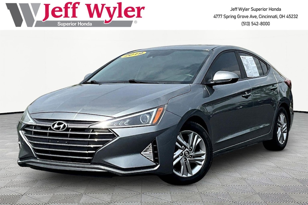 Jeff Wyler Superior Honda is honored to offer this terrific 2019 Hyundai Elantra Value Edition in Galactic Gray. BLUETOOTH, MOONROOF SUNROOF, and CLEAN CARFAX...NO ACCIDENTS Cargo Package (Cargo Net, Reversible Cargo Tray, and Trunk Hooks), Option Group 01, Elantra Value Edition, 4D Sedan, 2.0L 4-Cylinder DOHC 16V, 6-Speed Automatic with Shiftronic, FWD, Galactic Gray, Black Cloth, 16" x 6.5" Alloy Wheels, 4-Wheel Disc Brakes, 6 Speakers, ABS brakes, Air Conditioning, Alloy wheels, AM/FM radio: SiriusXM, Apple CarPlay & Android Auto, Automatic temperature control, Brake assist, Bumpers: body-color, Delay-off headlights, Driver door bin, Driver vanity mirror, Dual front impact airbags, Dual front side impact airbags, Electronic Stability Control, Emergency communication system: Blue Link, Exterior Parking Cameras, First Aid Kit, Front anti-roll bar, Front Bucket Seats, Front Center Armrest, Front dual zone A/C, Front reading lights, Front wheel independent suspension, Fully automatic headlights, Heated door mirrors, Heated Front Bucket Seats, Heated front seats, Illuminated entry, Knee airbag, Low tire pressure warning, Occupant sensing airbag, Outside temperature display, Overhead airbag, Overhead console, Panic alarm, Passenger door bin, Passenger vanity mirror, Power door mirrors, Power moonroof, Power steering, Power windows, Premium Cloth Seat Trim, Radio: AM/FM/HD/SiriusXM/MP3 Display Audio, Rear Bumper Applique, Rear window defroster, Remote keyless entry, Security system, Speed control, Speed-sensing steering, Split folding rear seat, Steering wheel mounted audio controls, Tachometer, Telescoping steering wheel, Tilt steering wheel, Traction control, Trip computer, Variably intermittent wipers, and Wheel Locks Our PRE-OWNED vehicles are put through a rigorous 167- POINT QUALITY ASSURANCE INSPECTION along with an average amount of over $1,400.00 SPENT to recondition each vehicle so we can be sure to deliver you the highest quality vehicle like you deserve! ***ONLINE PRICE DOES NOT INCLUDE WYLER FAMILY FIRST PACKAGE*** Stop by 4777 Spring Grove Ave. Road to see for yourself, or give us a call @ 283-209-1858 to schedule your test drive!Vehicle pricing includes all offers and incentives. Due to limited inventory, offers and pricing are all subject to change. Tax, Title, Tags and $387 doc fees are not included in vehicle price shown and must be paid by the purchaser. Doc fees vary by location. Financing w/approved credit. Mileage est. Based on current EPA estimates reflecting new EPA methods beginning w/ 2008 models. For comparison only. Do not compare to pre 2008 models. Actual mileage may vary based on how you drive and maintain your vehicle. Information on this site includes 3rd party data believed to be reliable, subject to change without notice. Jeff Wyler reserves the right to correct any errors and/or omissions in the compilation or presentation of this data and makes no representations express or implied to any prospective purchaser as to the vehicle's condition, specifications, history, equipment or equipment function, price or warranties. This vehicle may be subject to an open recall that has not been repaired. Please consult safercar.gov for more information on the current status. It is the responsibility of purchaser to confirm any data prior to purchase. Other than MSRP, all offers only apply to this vehicle and are subject to change. Vehicle prices are subject to change and all vehicles are subject to prior sale and may not be available when you are ready to purchase. Prices listed on any other website may not be accepted. Dealership advertises the sale of vehicles through a number of different channels and cannot always control when they are updated. Wyler? and Jeff Wyler? are registered trademarks of the Jeff Wyler Automotive Family, Inc.