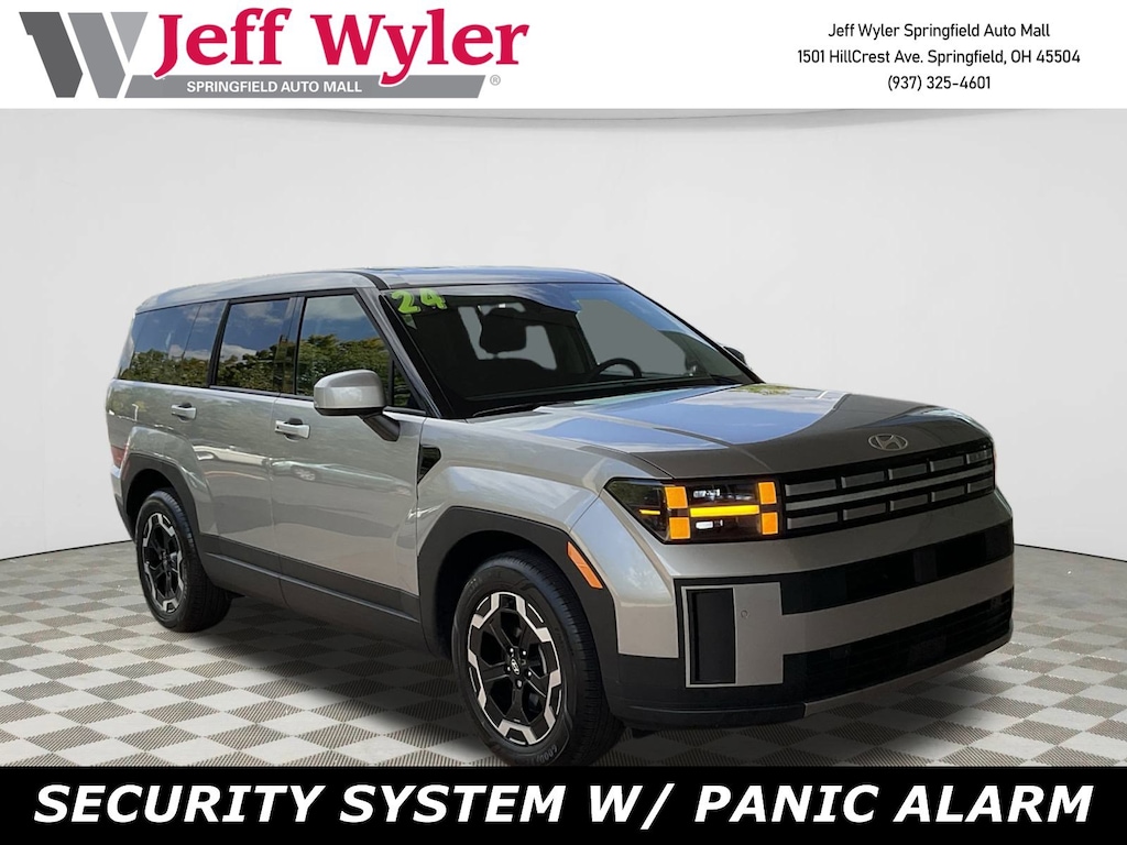 Jeff Wyler Springfield Auto Mall is delighted to offer this great-looking 2024 Hyundai Santa Fe SE in Shimmering Silver Pearl. Well equipped with: Option Group 01, 18" x 7.5J Alloy Wheels, 3rd row seats: bench, 4-Wheel Disc Brakes, 6 Speakers, ABS brakes, Air Conditioning, Alloy wheels, AM/FM radio: SiriusXM, Apple CarPlay & Android Auto, Auto High-beam Headlights, Axle Ratio: 3.316, Brake assist, Bumpers: body-color, Carpeted Floor Mats, Delay-off headlights, Driver door bin, Driver vanity mirror, Dual front impact airbags, Dual front side impact airbags, Electronic Stability Control, Emergency communication system, Exterior Parking Camera Rear, Four wheel independent suspension, Front anti-roll bar, Front Bucket Seats, Front Center Armrest, Front reading lights, Fully automatic headlights, Heated door mirrors, Illuminated entry, Knee airbag, Leather steering wheel, Low tire pressure warning, Occupant sensing airbag, Outside temperature display, Overhead airbag, Overhead console, Panic alarm, Passenger door bin, Passenger vanity mirror, Power door mirrors, Power Liftgate, Power steering, Power windows, Radio: AM/FM/HD Display Audio, Rear anti-roll bar, Rear seat center armrest, Rear side impact airbag, Rear window defroster, Rear window wiper, Remote keyless entry, Security system, Speed control, Speed-sensing steering, Split folding rear seat, Spoiler, Steering wheel mounted audio controls, Tachometer, Telescoping steering wheel, Tilt steering wheel, Traction control, Trip computer, Variably intermittent wipers, and YES Essentials Stain-Resistant Cloth Seat Trim. Ask about available certifications. Used vehicles 10 years of age or newer with less than 100,000 miles are eligible for the Wyler Assurance Program, but eligible vehicles must pass our reconditioning process and multi-point inspection. Provided the vehicle passes inspection, vehicles will be eligible for the 6 month/6,000 mile limited warranty. The 6 month/6,000 mile limited warranty is NOT available on AS-IS vehicles, wholesale vehicles, lease buyback/pass-thru vehicles or un-inspected vehicles. Note that this program can also apply to vehicles where the remaining factory coverage is less than 6 months or 6,000 miles. Please check the Federal Trade Commission (FTC) Buyers guide on the vehicle for full details as to whether or not warranty coverage may apply. Contact Dealer for additional details. The Wyler Assurance 6 month/6,000 Mile limited warranty ends 6 months from the date of the Retail Purchase Agreement (BUYERS ORDER) or when the vehicle's odometer registers 6,000 additional miles to the mileage listed on the BUYERS ORDER, whichever comes first. Your Deductible - The warranty holder on your contract pays the first $100 of each covered repair.