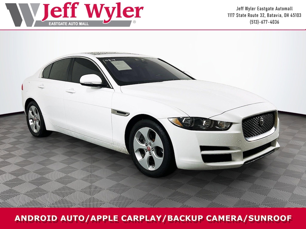 Jeff Wyler Eastgate Auto Mall is pleased to offer this stunning 2017 Jaguar XE 25t in White. Well equipped with: 4-Wheel Disc Brakes, 6 Speakers, ABS brakes, Air Conditioning, Alloy wheels, AM/FM radio, Auto-dimming Rear-View mirror, Automatic temperature control, Brake assist, Bumpers: body-color, Delay-off headlights, Driver door bin, Driver vanity mirror, Dual front impact airbags, Dual front side impact airbags, Electronic Stability Control, Emergency communication system: InControl Protect, Four wheel independent suspension, Front anti-roll bar, Front Bucket Seats, Front Center Armrest, Front dual zone A/C, Front reading lights, Fully automatic headlights, Heated door mirrors, Illuminated entry, Low tire pressure warning, LuxTec Seat Trim, Occupant sensing airbag, Outside temperature display, Overhead airbag, Overhead console, Panic alarm, Passenger door bin, Passenger vanity mirror, Power door mirrors, Power driver seat, Power moonroof, Power passenger seat, Power steering, Power windows, Radio data system, Radio: Jaguar 80W Sound System w/6 Speakers, Rain sensing wipers, Rear anti-roll bar, Rear fog lights, Rear seat center armrest, Rear window defroster, Remote keyless entry, Security system, Speed control, Speed-sensing steering, Steering wheel mounted audio controls, Tachometer, Telescoping steering wheel, Tilt steering wheel, Traction control, Trip computer, Turn signal indicator mirrors, Variably intermittent wipers, and Wheels: 17" Projector 5-Spoke Alloy. Reviews: * Exhilarating acceleration with the V6 engine; fuel-efficient diesel option; sharp handling and exceptional steering when going around turns; comfortable and controlled ride even with sport-tuned models; best-in-class warranty. Source: EdmundsAwards: * 2017 KBB.com Brand Image Awards Ask about available certifications. Used vehicles 10 years of age or newer with less than 100,000 miles are eligible for the Wyler Assurance Program, but eligible vehicles must pass our reconditioning process and multi-point inspection. Provided the vehicle passes inspection, vehicles will be eligible for the 6 month/6,000 mile limited warranty. The 6 month/6,000 mile limited warranty is NOT available on AS-IS vehicles, wholesale vehicles, lease buyback/pass-thru vehicles or un-inspected vehicles. Note that this program can also apply to vehicles where the remaining factory coverage is less than 6 months or 6,000 miles. Please check the Federal Trade Commission (FTC) Buyers guide on the vehicle for full details as to whether or not warranty coverage may apply. Contact Dealer for additional details. The Wyler Assurance 6 month/6,000 Mile limited warranty ends 6 months from the date of the Retail Purchase Agreement (BUYERS ORDER) or when the vehicle's odometer registers 6,000 additional miles to the mileage listed on the BUYERS ORDER, whichever comes first. Your Deductible - The warranty holder on your contract pays the first $100 of each covered repair.