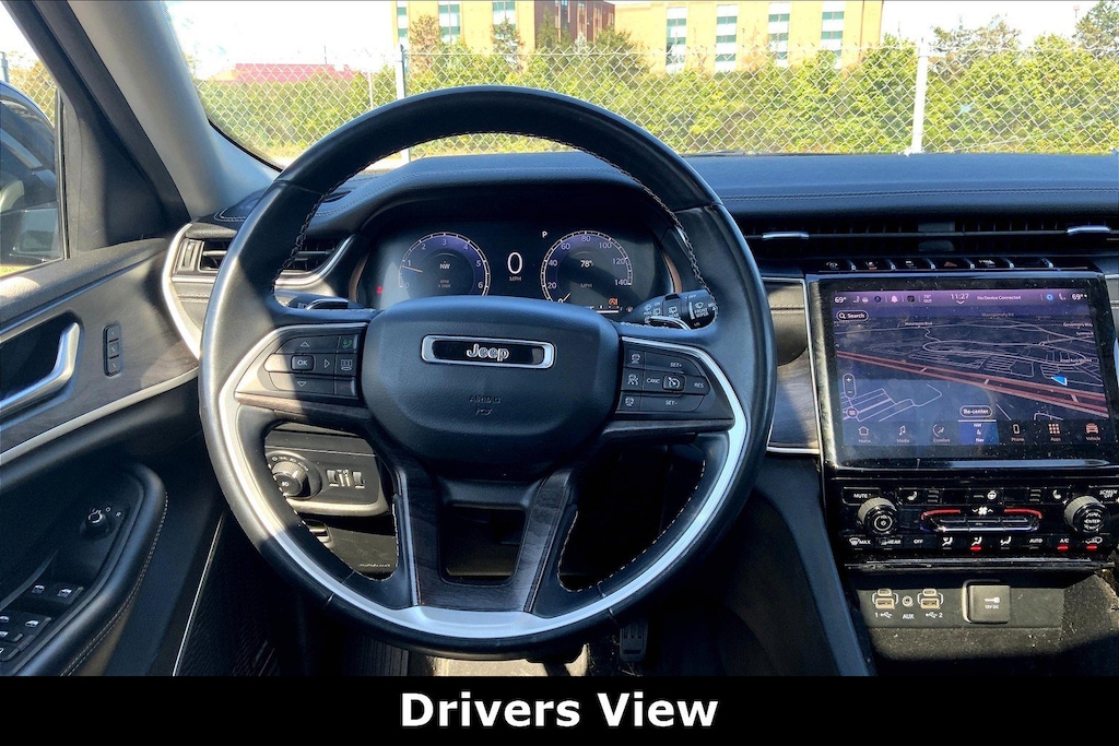 Jeff Wyler Kings Nissan is very proud to offer this charming 2021 Jeep Grand Cherokee L Limited in Diamond Black Crystal Pearlcoat. Well equipped with: Quick Order Package 22E, Trailer Tow Group (B) (DISC) (220 Amp Alternator, Automatic Headlamp Leveling System, Heavy-Duty Engine Cooling, Rear Load Leveling Suspension, and Trailer Hitch Zoom), 10.1" Touchscreen Display, 3.45 Rear Axle Ratio, 3rd row seats: split-bench, 4-Wheel Disc Brakes, 506 Watt Amplifier, 6 Speakers, 9 Amplified Speakers w/Subwoofer, ABS brakes, Air Conditioning, Alloy wheels, AM/FM radio: SiriusXM w/360L, Anti-whiplash front head restraints, Apple CarPlay, Apple CarPlay/Android Auto, Audio memory, Auto High-beam Headlights, Automatic temperature control, Brake assist, Bridgestone Brand Tires, Bumpers: body-color, Capri Leather Seats, Compass, Connected Travel & Traffic Services, Connectivity - US/Canada, Delay-off headlights, Disassociated Touchscreen Display, Driver door bin, Driver vanity mirror, Dual front impact airbags, Dual front side impact airbags, Dual-Pane Panoramic Sunroof, Electronic Stability Control, Emergency communication system, Four wheel independent suspension, Front anti-roll bar, Front Bucket Seats, Front Center Armrest w/Storage, Front dual zone A/C, Front fog lights, Front reading lights, Fully automatic headlights, Garage door transmitter, Google Android Auto, GPS Antenna Input, GPS Navigation, HD Radio, Heated door mirrors, Heated front seats, Heated rear seats, Heated steering wheel, Illuminated entry, Integrated Center Stack Radio, Integrated Voice Command w/Bluetooth, Interior Rear Facing Camera, Knee airbag, Leather steering wheel, Low tire pressure warning, Manual Fold Seatbacks, Memory seat, MOPAR Bright Side Steps, Normal Duty Suspension, Occupant sensing airbag, Outside temperature display, Overhead airbag, Overhead console, Panic alarm, ParkView Rear Back-Up Camera, Passenger door bin, Passenger vanity mirror, Power door mirrors, Power driver seat, Power Liftgate, Power passenger seat, Power steering, Power windows, Radio data system, Radio: Uconnect 5 Nav w/10.1" Display, Radio: Uconnect 5 w/8.4" Display, Rear air conditioning, Rear anti-roll bar, Rear reading lights, Rear window defroster, Rear window wiper, Reclining 3rd row seat, Remote keyless entry, Roof rack: rails only, Security system, SiriusXM Satellite Radio, SiriusXM w/360L, Speed control, Speed-Sensitive Wipers, Split folding rear seat, Spoiler, Steering wheel mounted audio controls, Tachometer, Telescoping steering wheel, Tilt steering wheel, Traction control, Trip computer, Turn signal indicator mirrors, USB Host Flip, Variably intermittent wipers, Voltmeter, Wheels: 18" x 8.0" Fully Painted Aluminum 2, and Wheels: 20" x 8.5" Polished/Painted Aluminum (DISC)Ask about available certifications.
