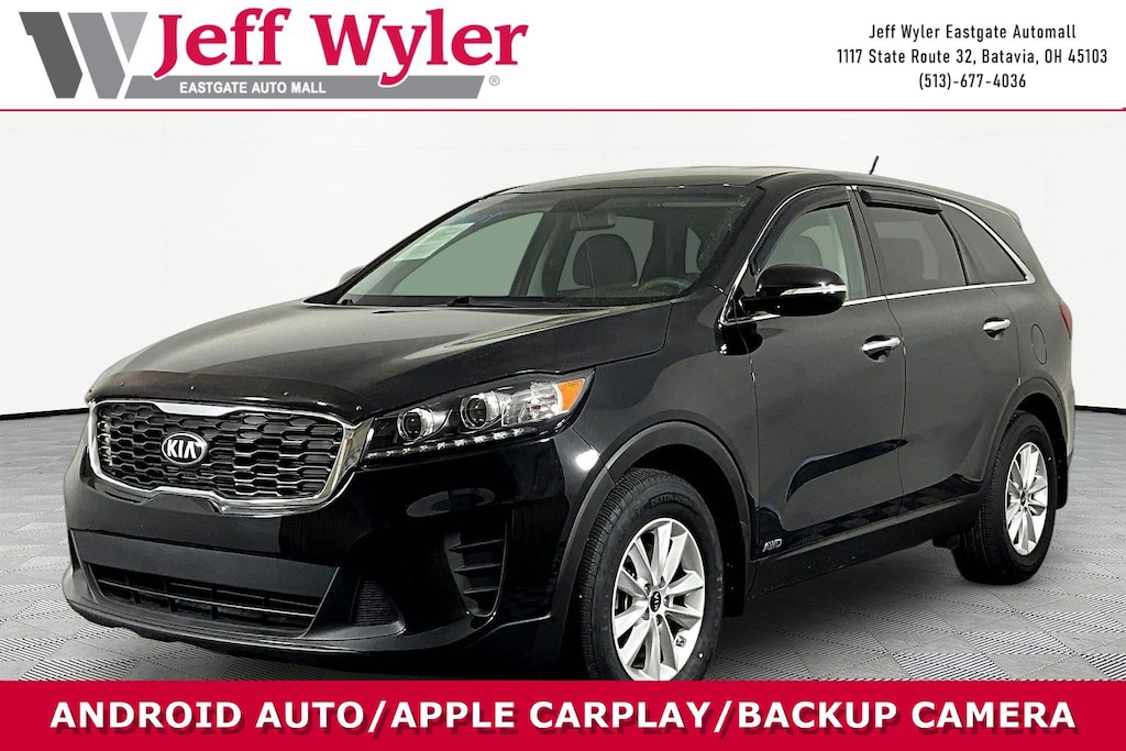 Jeff Wyler Eastgate Auto Mall is honored to offer this gorgeous-looking 2020 Kia Sorento LX in Ebony Black. Well equipped with: 17" x 7.0" Alloy Wheels, 3.648 Axle Ratio, 3rd row seats: split-bench, 4-Wheel Disc Brakes, 6 Speakers, ABS brakes, Air Conditioning, Alloy wheels, AM/FM radio, Apple CarPlay & Android Auto, Brake assist, Bumpers: body-color, Carpeted Floor Mats (7-Passenger), Delay-off headlights, Driver door bin, Driver vanity mirror, Dual front impact airbags, Dual front side impact airbags, Electronic Stability Control, Exterior Parking Camera Rear, Four wheel independent suspension, Front anti-roll bar, Front Bucket Seats, Front Center Armrest, Front reading lights, Fully automatic headlights, Heated door mirrors, Illuminated entry, Low tire pressure warning, Occupant sensing airbag, Outside temperature display, Overhead airbag, Overhead console, Panic alarm, Passenger door bin, Passenger vanity mirror, Power door mirrors, Power steering, Power windows, Radio data system, Radio: AM/FM/MP3 Audio System, Rear anti-roll bar, Rear seat center armrest, Rear window defroster, Rear window wiper, Remote keyless entry, Security system, Speed control, Speed-sensing steering, Split folding rear seat, Spoiler, Steering wheel mounted audio controls, Tachometer, Telescoping steering wheel, Tilt steering wheel, Traction control, Trip computer, Turn signal indicator mirrors, Variably intermittent wipers, and YES Essentials Cloth Seat Trim. Clean CARFAX. Awards: * JD Power Initial Quality Study (IQS) Ask about available certifications. Used vehicles 10 years of age or newer with less than 100,000 miles are eligible for the Wyler Assurance Program, but eligible vehicles must pass our reconditioning process and multi-point inspection. Provided the vehicle passes inspection, vehicles will be eligible for the 6 month/6,000 mile limited warranty. The 6 month/6,000 mile limited warranty is NOT available on AS-IS vehicles, wholesale vehicles, lease buyback/pass-thru vehicles or un-inspected vehicles. Note that this program can also apply to vehicles where the remaining factory coverage is less than 6 months or 6,000 miles. Please check the Federal Trade Commission (FTC) Buyers guide on the vehicle for full details as to whether or not warranty coverage may apply. Contact Dealer for additional details. The Wyler Assurance 6 month/6,000 Mile limited warranty ends 6 months from the date of the Retail Purchase Agreement (BUYERS ORDER) or when the vehicle's odometer registers 6,000 additional miles to the mileage listed on the BUYERS ORDER, whichever comes first. Your Deductible - The warranty holder on your contract pays the first $100 of each covered repair.