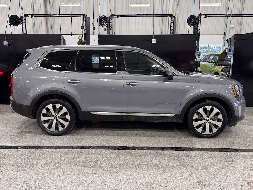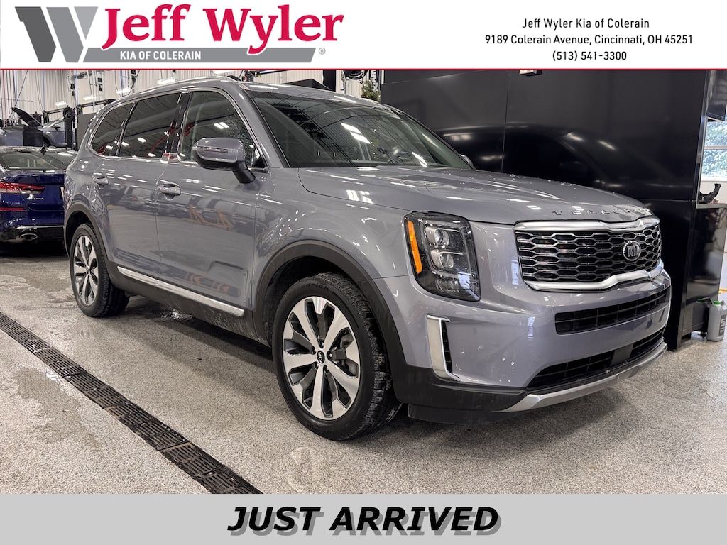 Jeff Wyler Kia of Colerain is delighted to offer this good-looking 2021 Kia Telluride EX in Everlasting Silver. EX Premium Package (2nd Row Captain Chairs, LED Headlamps, Satin Chrome Roof Rails, and Wheels: 7.5" x 20" Machined Finish Alloy), 3.648 Axle Ratio, 3rd row seats: split-bench, 4-Wheel Disc Brakes, 6 Speakers, ABS brakes, Air Conditioning, Alloy wheels, AM/FM radio: SiriusXM, Apple CarPlay & Android Auto, Auto-dimming Rear-View mirror, Automatic temperature control, Brake assist, Bumpers: body-color, Cargo Net, Carpeted Floor Mats, Compass, Delay-off headlights, Driver door bin, Driver vanity mirror, Dual front impact airbags, Dual front side impact airbags, Electronic Stability Control, Emergency communication system: 911 Connect, Four wheel independent suspension, Front anti-roll bar, Front Bucket Seats, Front Center Armrest, Front dual zone A/C, Front reading lights, Fully automatic headlights, Heated & Ventilated Front Bucket Seats, Heated door mirrors, Heated front seats, Illuminated entry, Knee airbag, Leather Seat Trim, Leather Shift Knob, Leather steering wheel, Low tire pressure warning, Navigation System, Occupant sensing airbag, Outside temperature display, Overhead airbag, Overhead console, Panic alarm, Passenger door bin, Passenger vanity mirror, Power door mirrors, Power driver seat, Power Liftgate, Power moonroof, Power passenger seat, Power steering, Power windows, Radio data system, Radio: AM/FM/SIRIUS Display Audio, Rear air conditioning, Rear anti-roll bar, Rear audio controls, Rear reading lights, Rear seat center armrest, Rear window defroster, Rear window wiper, Reclining 3rd row seat, Remote keyless entry, Roof rack: rails only, Security system, Smart Key w/ Push Button and Remote Start, Speed control, Speed-sensing steering, Split folding rear seat, Spoiler, Steering wheel mounted audio controls, Tachometer, Telescoping steering wheel, Tilt steering wheel, Traction control, Trip computer, Turn signal indicator mirrors, Variably intermittent wipers, Ventilated front seats, Wheel Locks, and Wheels: 7.5" x 18" Machined Finish Alloy Our PRE-OWNED vehicles are put through a rigorous 167- POINT QUALITY ASSURANCE INSPECTION along with an average amount of over $1,400.00 SPENT to recondition each vehicle so we can be sure to deliver you the highest quality vehicle like you deserve! ***ONLINE PRICE DOES NOT INCLUDE WYLER FAMILY FIRST PACKAGE***