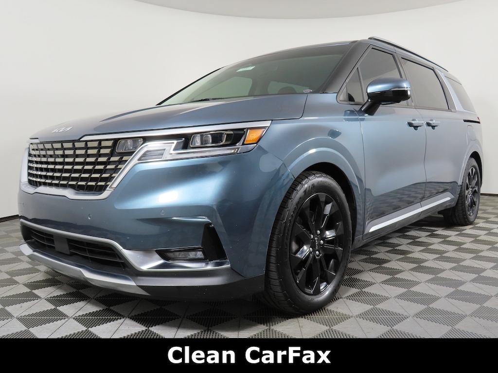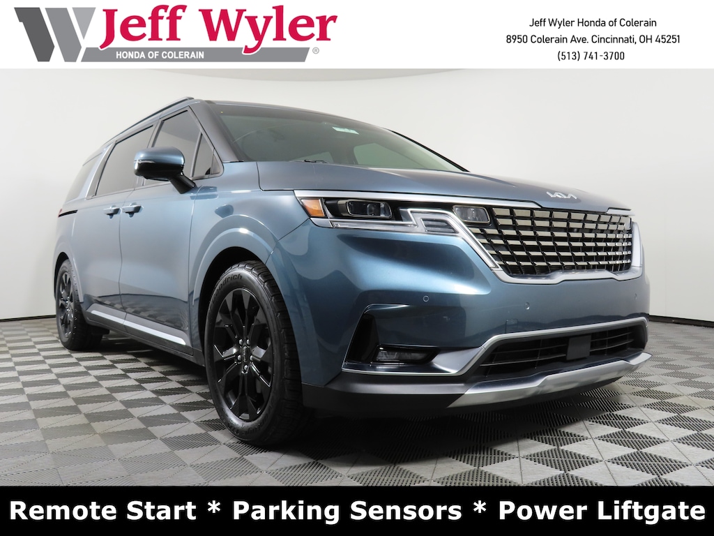 Jeff Wyler Honda of Colerain is very proud to offer this handsome 2022 Kia Carnival SX Prestige in Astra Blue. Well equipped with: 12 Speakers, 3.51 Axle Ratio, 3rd row seats: split-bench, 4-way Power Driver's Lumbar Support, 4-Wheel Disc Brakes, 8 Way Power Driver's Seat, 8 Way Power Front Passenger's Seat, ABS brakes, Air Conditioning, Alloy wheels, AM/FM radio: SiriusXM, Apple CarPlay & Android Auto, Auto High-beam Headlights, Auto-dimming Rear-View mirror, Automatic temperature control, Brake assist, Bumpers: body-color, Cargo Mat, Compass, Delay-off headlights, Driver door bin, Driver vanity mirror, Driver's Seat & Mirrors Memory System, Dual front impact airbags, Dual front side impact airbags, Electronic Stability Control, Emergency communication system: UVO eServices, Four wheel independent suspension, Front anti-roll bar, Front Bucket Seats, Front Center Armrest, Front dual zone A/C, Front fog lights, Front reading lights, Fully automatic headlights, Garage door transmitter: HomeLink, Heated & Ventilated Front Bucket Seats, Heated door mirrors, Heated front seats, Heated rear seats, Heated steering wheel, Illuminated entry, Knee airbag, Leather Shift Knob, Leather steering wheel, Low tire pressure warning, Luxury Carpeted Floor Mats, Memory seat, Navigation system: UVO eServices, Occupant sensing airbag, Outside temperature display, Overhead airbag, Overhead console, Panic alarm, Passenger door bin, Passenger vanity mirror, Power 2nd-Row Moonroof, Power door mirrors, Power driver seat, Power Liftgate, Power moonroof, Power passenger seat, Power steering, Power windows, Pure Leather Seat Trim, Radio: AM/FM/HD Audio System, Rear air conditioning, Rear anti-roll bar, Rear reading lights, Rear window defroster, Rear window wiper, Reclining 3rd row seat, Remote keyless entry, Roof rack: rails only, Security system, Speed control, Speed-sensing steering, Split folding rear seat, Spoiler, Steering wheel mounted audio controls, Tachometer, Telescoping steering wheel, Tilt steering wheel, Traction control, Trip computer, Turn signal indicator mirrors, Variably intermittent wipers, Ventilated front seats, Ventilated rear seats, and Wheels: 7.5J x 19" Black Painted Alloy.