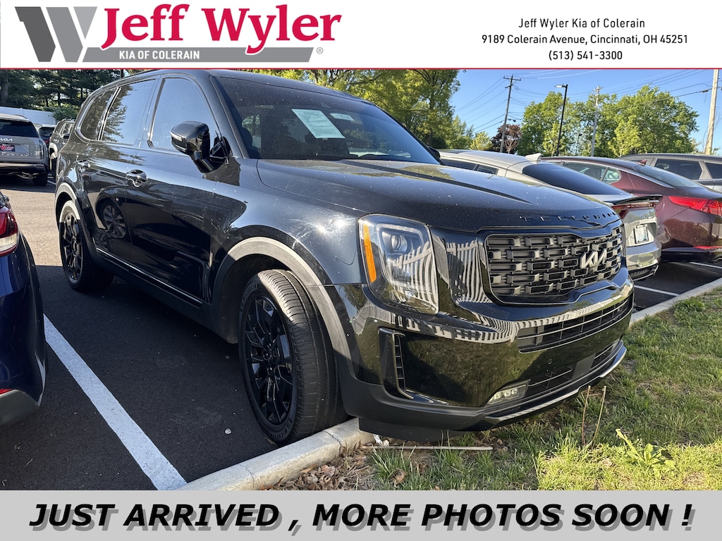 Jeff Wyler Kia of Colerain is very proud to offer this fantastic 2022 Kia Telluride SX in Ebony Black. Nightfall Edition Package (Black Finish Radiator Grille, Body Color Exterior Door Handles, Exclusive Black Fog Light Bezel, Exclusive Black Headlight Bezels, Front & Rear Gloss Black Finish Bumper Skid Plates, Gloss Black Finish Exterior Emblems, Gloss Black Finish Front & Rear Door Garnish, Gloss Black Finish Roof Rails, and Wheels: 20" x 7.5" Exclusive Black Alloy), SX Prestige Package (110V Inverter, Heads-Up Display, Heated & Ventilated 2nd Row Seats, Premium Cloth Headliner & Pillar Trim, Premium Nappa Leather Seat Trim, and Rain-Sensing Front Windshield Wipers), Towing Package (Self Leveling Rear Suspension and Tow Hitch w/Harness (TOF)), 10 Speakers, 3.648 Axle Ratio, 3rd row seats: split-bench, 4-Wheel Disc Brakes, ABS brakes, Air Conditioning, Alloy wheels, AM/FM radio: SiriusXM, Apple CarPlay & Android Auto, Auto High-beam Headlights, Auto-dimming Rear-View mirror, Automatic temperature control, Brake assist, Bumpers: body-color, Carpeted Floor Mats, Compass, Delay-off headlights, Driver door bin, Driver vanity mirror, Dual front impact airbags, Dual front side impact airbags, Electronic Stability Control, Emergency communication system: 911 Connect, Four wheel independent suspension, Front anti-roll bar, Front Bucket Seats, Front Center Armrest, Front dual zone A/C, Front fog lights, Front reading lights, Fully automatic headlights, Garage door transmitter: HomeLink, harman/kardon® Speakers, Heated & Ventilated Front Bucket Seats, Heated door mirrors, Heated front seats, Heated steering wheel, Illuminated entry, Knee airbag, Leather Seat Trim, Leather Shift Knob, Leather steering wheel, Low tire pressure warning, Memory seat, Navigation System, Occupant sensing airbag, Outside temperature display, Overhead airbag, Overhead console, Panic alarm, Passenger door bin, Passenger vanity mirror, Power door mirrors, Power driver seat, Power Liftgate, Power moonroof, Power passenger seat, Power steering, Power windows, Radio data system, Radio: AM/FM harman/kardon Audio System, Rear air conditioning, Rear anti-roll bar, Rear audio controls, Rear reading lights, Rear window defroster, Rear window wiper, Reclining 3rd row seat, Remote keyless entry, Roof rack: rails only, Security system, Smart Key w/ Push Button and Remote Start, Speed control, Speed-sensing steering, Split folding rear seat, Spoiler, Steering wheel mounted audio controls, SX Dune Brown Nappa Leather Seats, Tachometer, Telescoping steering wheel, Tilt steering wheel, Traction control, Trip computer, Turn signal indicator mirrors, Variably intermittent wipers, Ventilated front seats, and Wheels: 20" x 7.5" Black Alloy Our PRE-OWNED vehicles are put through a rigorous 167- POINT QUALITY ASSURANCE INSPECTION along with an average amount of over $1,400.00 SPENT to recondition each vehicle so we can be sure to deliver you the highest quality vehicle like you deserve! ***ONLINE PRICE DOES NOT INCLUDE WYLER FAMILY FIRST PACKAGE***