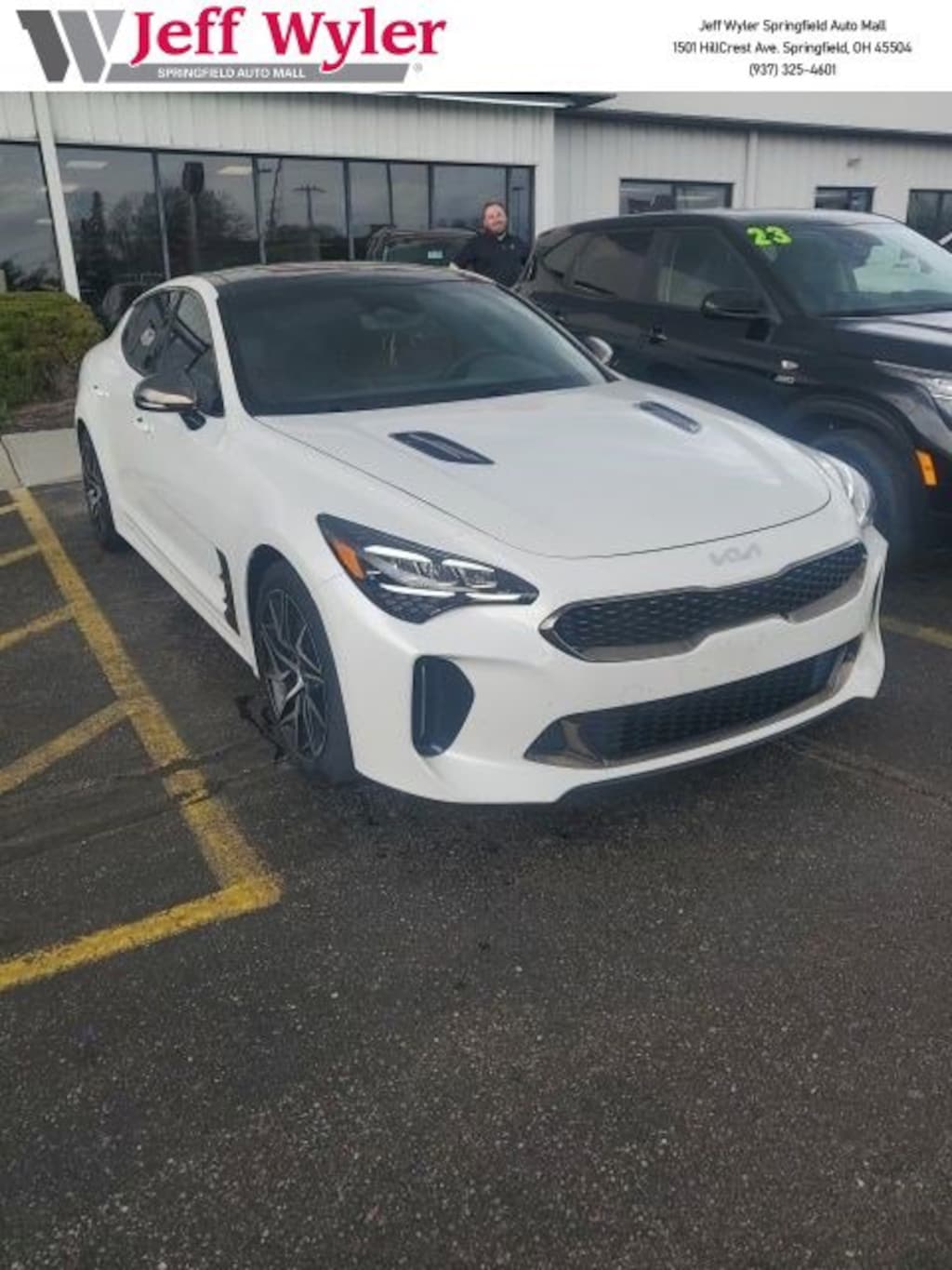Jeff Wyler Springfield Auto Mall is pleased to offer this gorgeous 2023 Kia Stinger GT-Line in Snow White Pearl. Well equipped with: Red Interior Color Package (Red Leather Seat Trim), Sun & Sound Package (8-Way Power Adjustable Passenger Seat, Power Tilt & Slide Sunroof w/One-Touch, and Radio: harmon/kardon AM/FM/MP3/HD Audio System), 4-Wheel Disc Brakes, 9 Speakers, ABS brakes, Air Conditioning, Alloy wheels, AM/FM radio: SiriusXM, Anti-whiplash front head restraints, Apple CarPlay & Android Auto, Auto High-beam Headlights, Auto-dimming Rear-View mirror, Automatic temperature control, Brake assist, Bumpers: body-color, Cargo Mat, Carpeted Floor Mat, Delay-off headlights, Driver door bin, Driver vanity mirror, Dual front impact airbags, Dual front side impact airbags, EC Mirror w/Homelink, Electronic Stability Control, Emergency communication system, Exterior Parking Camera Rear, Four wheel independent suspension, Front anti-roll bar, Front Bucket Seats, Front Center Armrest, Front dual zone A/C, Front reading lights, Fully automatic headlights, Heated door mirrors, Heated Front Bucket Seats, Heated front seats, Heated steering wheel, Illuminated entry, Knee airbag, Leather Seat Trim, Low tire pressure warning, Navigation System, Occupant sensing airbag, Outside temperature display, Overhead airbag, Overhead console, Panic alarm, Passenger door bin, Passenger vanity mirror, Power door mirrors, Power driver seat, Power steering, Power windows, Radio: AM/FM/MP3/HD Audio System, Rain sensing wipers, Rear air conditioning, Rear anti-roll bar, Rear seat center armrest, Rear window defroster, Remote keyless entry, Seat Back Cargo Tray, Security system, Smart Key w/ Push Button and Remote Start, Speed control, Speed-Sensitive Wipers, Split folding rear seat, Sport steering wheel, Steering wheel mounted audio controls, Tachometer, Telescoping steering wheel, Tilt steering wheel, Traction control, Trip computer, Turn signal indicator mirrors, Variably intermittent wipers, and Wheels: 8.0J x 18 Vertex Alloy. Ask about available certifications. Used vehicles 10 years of age or newer with less than 100,000 miles are eligible for the Wyler Assurance Program, but eligible vehicles must pass our reconditioning process and multi-point inspection. Provided the vehicle passes inspection, vehicles will be eligible for the 6 month/6,000 mile limited warranty. The 6 month/6,000 mile limited warranty is NOT available on AS-IS vehicles, wholesale vehicles, lease buyback/pass-thru vehicles or un-inspected vehicles. Note that this program can also apply to vehicles where the remaining factory coverage is less than 6 months or 6,000 miles. Please check the Federal Trade Commission (FTC) Buyers guide on the vehicle for full details as to whether or not warranty coverage may apply. Contact Dealer for additional details. The Wyler Assurance 6 month/6,000 Mile limited warranty ends 6 months from the date of the Retail Purchase Agreement (BUYERS ORDER) or when the vehicle's odometer registers 6,000 additional miles to the mileage listed on the BUYERS ORDER, whichever comes first. Your Deductible - The warranty holder on your contract pays the first $100 of each covered repair.