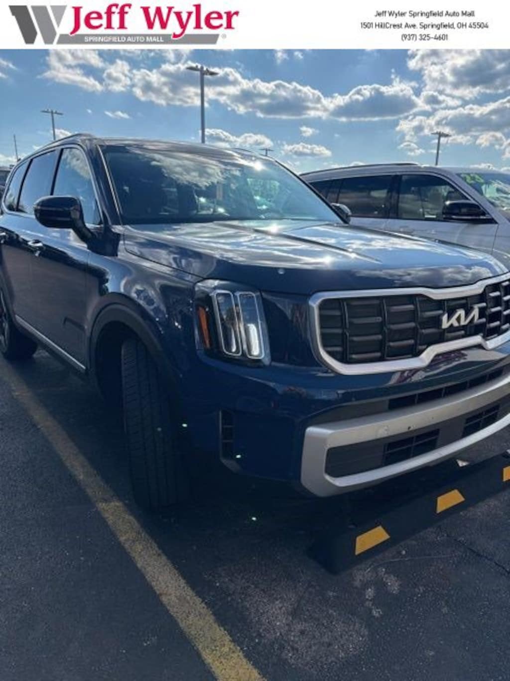 Jeff Wyler Springfield Auto Mall is honored to offer this superb-looking 2023 Kia Telluride S in Midnight Lake Blue. Well equipped with: S Sunroof Package (Power Sunroof w/Sunshade), 3.510 Axle Ratio, 3rd row seats: split-bench, 4-Wheel Disc Brakes, 6 Speakers, ABS brakes, Air Conditioning, Alloy wheels, AM/FM radio: SiriusXM, Apple CarPlay & Android Auto, Auto High-beam Headlights, Automatic temperature control, Brake assist, Bumpers: body-color, Carpet Floor Mats, Delay-off headlights, Driver door bin, Driver vanity mirror, Dual front impact airbags, Dual front side impact airbags, Electronic Stability Control, Emergency communication system: 911 Connect, Exterior Parking Camera Rear, Four wheel independent suspension, Front anti-roll bar, Front Bucket Seats, Front Center Armrest, Front dual zone A/C, Front reading lights, Fully automatic headlights, Heated door mirrors, Heated Front Bucket Seats, Heated front seats, Illuminated entry, Knee airbag, Leather Shift Knob, Leather steering wheel, Low tire pressure warning, Navigation System, Occupant sensing airbag, Outside temperature display, Overhead airbag, Overhead console, Panic alarm, Passenger door bin, Passenger vanity mirror, Power door mirrors, Power driver seat, Power steering, Power windows, Radio data system, Radio: AM/FM Display Audio System, Rear air conditioning, Rear anti-roll bar, Rear audio controls, Rear reading lights, Rear side impact airbag, Rear window defroster, Rear window wiper, Reclining 3rd row seat, Remote keyless entry, Roof rack: rails only, Security system, Smart Key w/ Push Button and Remote Start, Speed control, Speed-sensing steering, Split folding rear seat, Spoiler, Steering wheel mounted audio controls, SynTex Synthetic Leather Seat Trim, Tachometer, Telescoping steering wheel, Tilt steering wheel, Traction control, Trip computer, Turn signal indicator mirrors, Variably intermittent wipers, and Wheels: 20" x 7.5" Black Finish. Ask about available certifications. Used vehicles 10 years of age or newer with less than 100,000 miles are eligible for the Wyler Assurance Program, but eligible vehicles must pass our reconditioning process and multi-point inspection. Provided the vehicle passes inspection, vehicles will be eligible for the 6 month/6,000 mile limited warranty. The 6 month/6,000 mile limited warranty is NOT available on AS-IS vehicles, wholesale vehicles, lease buyback/pass-thru vehicles or un-inspected vehicles. Note that this program can also apply to vehicles where the remaining factory coverage is less than 6 months or 6,000 miles. Please check the Federal Trade Commission (FTC) Buyers guide on the vehicle for full details as to whether or not warranty coverage may apply. Contact Dealer for additional details. The Wyler Assurance 6 month/6,000 Mile limited warranty ends 6 months from the date of the Retail Purchase Agreement (BUYERS ORDER) or when the vehicle's odometer registers 6,000 additional miles to the mileage listed on the BUYERS ORDER, whichever comes first. Your Deductible - The warranty holder on your contract pays the first $100 of each covered repair.