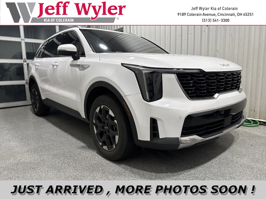 Jeff Wyler Kia of Colerain is delighted to offer this fantastic-looking 2024 Kia Sorento S in Glacial White Pearl. 3rd row seats: split-bench, 4-Wheel Disc Brakes, 4.081 Axle Ratio, 6 Speakers, ABS brakes, Air Conditioning, Alloy wheels, AM/FM radio: SiriusXM, Apple CarPlay & Android Auto, Auto High-beam Headlights, Automatic temperature control, Brake assist, Bumpers: body-color, Carpeted Floor Mats, Delay-off headlights, Driver door bin, Driver vanity mirror, Dual front impact airbags, Dual front side impact airbags, Electronic Stability Control, Emergency communication system: 911 Connect, Exterior Parking Camera Rear, Four wheel independent suspension, Front anti-roll bar, Front Bucket Seats, Front Center Armrest, Front dual zone A/C, Front fog lights, Front reading lights, Fully automatic headlights, Heated door mirrors, Heated Front Bucket Seats, Heated front seats, Illuminated entry, Knee airbag, Leather Shift Knob, Leather steering wheel, Low tire pressure warning, Navigation System, Occupant sensing airbag, Outside temperature display, Overhead airbag, Overhead console, Panic alarm, Passenger door bin, Passenger vanity mirror, Power door mirrors, Power driver seat, Power steering, Power windows, Radio data system, Radio: AM/FM Audio System, Rear anti-roll bar, Rear reading lights, Rear seat center armrest, Rear side impact airbag, Rear window defroster, Rear window wiper, Remote keyless entry, Security system, Smart Key w/ Push Button and Remote Start, Speed control, Speed-sensing steering, Split folding rear seat, Spoiler, Steering wheel mounted audio controls, SynTex Artificial Leather Seat Trim, Tachometer, Telescoping steering wheel, Tilt steering wheel, Traction control, Trip computer, Turn signal indicator mirrors, Variably intermittent wipers, and Wheels: 7.5J x 18" Alloy w/Machine Finish Our PRE-OWNED vehicles are put through a rigorous 167- POINT QUALITY ASSURANCE INSPECTION along with an average amount of over $1,400.00 SPENT to recondition each vehicle so we can be sure to deliver you the highest quality vehicle like you deserve! ***ONLINE PRICE DOES NOT INCLUDE WYLER FAMILY FIRST PACKAGE***