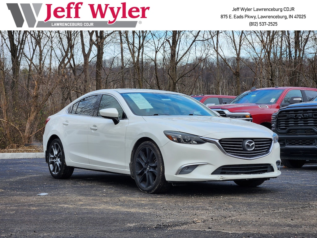 Jeff Wyler Chrysler Dodge Jeep of Lawrenceburg is very proud to offer this charming-looking 2016 Mazda Mazda6 i Grand Touring in Snowflake White Pearl Mica. 11 Speakers, 3 Level Heated Reclining Front Sport Bucket Seats, 4-Wheel Disc Brakes, ABS brakes, Air Conditioning, Alloy wheels, AM/FM radio: SiriusXM, Anti-whiplash front head restraints, Auto-dimming door mirrors, Auto-dimming Rear-View mirror, Automatic temperature control, Brake assist, Bumpers: body-color, CD player, Compass, Delay-off headlights, Driver door bin, Driver vanity mirror, Dual front impact airbags, Dual front side impact airbags, Electronic Stability Control, Exterior Parking Camera Rear, Four wheel independent suspension, Front anti-roll bar, Front Bucket Seats, Front Center Armrest, Front dual zone A/C, Front fog lights, Front reading lights, Fully automatic headlights, Garage door transmitter: HomeLink, Heads-Up Display, Heated door mirrors, Heated front seats, Illuminated entry, Leather Seat Trim, Leather Shift Knob, Low tire pressure warning, Memory seat, Navigation System, Occupant sensing airbag, Outside temperature display, Overhead airbag, Overhead console, Panic alarm, Passenger door bin, Passenger vanity mirror, Power door mirrors, Power driver seat, Power moonroof, Power passenger seat, Power steering, Power windows, Radio data system, Radio: AM/FM/CD/MP3/AUX BOSE 11-Speaker & HD Radio, Rain sensing wipers, Rear anti-roll bar, Rear reading lights, Rear seat center armrest, Rear window defroster, Remote keyless entry, Security system, Snowflake White Pearl Mica Paint Charge, Speed control, Speed-sensing steering, Split folding rear seat, Spoiler, Steering wheel mounted audio controls, Tachometer, Telescoping steering wheel, Tilt steering wheel, Traction control, Trip computer, Turn signal indicator mirrors, Variably intermittent wipers, and Wheels: 19" Alloy w/Dark Silver Finish Our PRE-OWNED vehicles are put through a rigorous 167- POINT QUALITY ASSURANCE INSPECTION along with an average amount of over $1,400.00 SPENT to recondition each vehicle so we can be sure to deliver you the highest quality vehicle like you deserve! ***ONLINE PRICE DOES NOT INCLUDE WYLER FAMILY FIRST PACKAGE*** Stop by 4136 Shelbyville Road to see for yourself, or give us a call @ 502-897-3151 to schedule your test drive! Ask about available certifications.