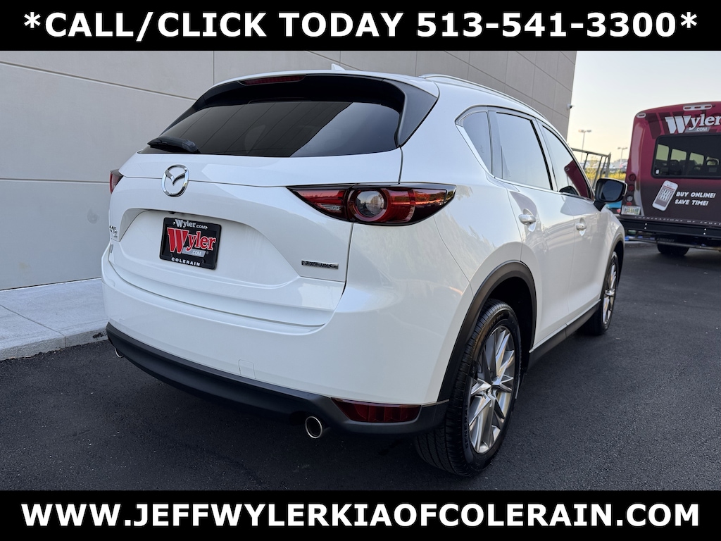 Jeff Wyler Kia of Colerain is very proud to offer this gorgeous 2020 Mazda CX-5 Grand Touring in Snowflake White Pearl Mica. GT Premium Package (Active Driving Display (Windshield Type), Automatic Power Folding Side Mirrors, Heated Rear Seats, Heated Steering Wheel, Ventilated Front Seats, and Windshield Wiper De-Icer), 10 Speakers, 4-Wheel Disc Brakes, 4.624 Axle Ratio, ABS brakes, Air Conditioning, Alloy wheels, AM/FM radio: SiriusXM, AppLink/Apple CarPlay and Android Auto, Auto High-beam Headlights, Auto-dimming Rear-View mirror, Automatic temperature control, Bose 10-Speaker Audio Sound System, Brake assist, Bumpers: body-color, Delay-off headlights, Driver door bin, Driver vanity mirror, Dual front impact airbags, Dual front side impact airbags, Electronic Stability Control, Emergency communication system, Exterior Parking Camera Rear, Four wheel independent suspension, Front anti-roll bar, Front Bucket Seats, Front Center Armrest, Front dual zone A/C, Front fog lights, Front reading lights, Fully automatic headlights, Garage door transmitter: HomeLink, Heated door mirrors, Heated front seats, Heated Front Sport Seats, Illuminated entry, Lane Departure Warning System, Leather Seat Trim, Leather Shift Knob, Low tire pressure warning, Memory seat, Occupant sensing airbag, Outside temperature display, Overhead airbag, Overhead console, Panic alarm, Passenger door bin, Passenger vanity mirror, Power door mirrors, Power driver seat, Power Liftgate, Power moonroof, Power passenger seat, Power steering, Power windows, Radio data system, Radio: AM/FM/HD Audio System, Rain sensing wipers, Rear anti-roll bar, Rear reading lights, Rear seat center armrest, Rear window defroster, Rear window wiper, Remote keyless entry, Roof Rack Side Rails, Snowflake White Pearl Mica Paint, Speed control, Speed-sensing steering, Split folding rear seat, Spoiler, Steering wheel mounted audio controls, Tachometer, Telescoping steering wheel, Tilt steering wheel, Traction control, Trip computer, Turn signal indicator mirrors, Variably intermittent wipers, Wheel Locks, and Wheels: 19" x 7J Aluminum Alloy w/Silver Finish Our PRE-OWNED vehicles are put through a rigorous 167- POINT QUALITY ASSURANCE INSPECTION along with an average amount of over $1,400.00 SPENT to recondition each vehicle so we can be sure to deliver you the highest quality vehicle like you deserve! ***ONLINE PRICE DOES NOT INCLUDE WYLER FAMILY FIRST PACKAGE***