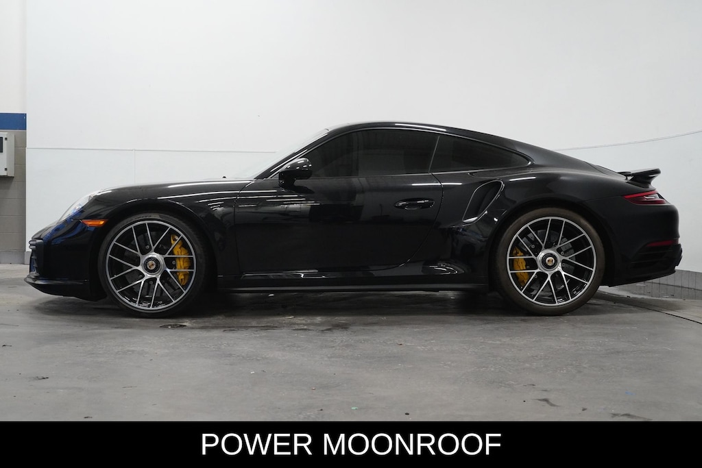 Clean CARFAX. Jet Black Metallic 2019 Porsche 911 Turbo S AWD 7-Speed Porsche Doppelkupplung (PDK) 3.8L H6 Turbocharged DOHC 24V LEV3-LEV160 580hp AWD, ABS brakes, Air Vent Slats in Leather, Alloy wheels, Apple CarPlay®, Burmester High-End Surround Sound System, Door-Sill Guards in Carbon Fiber, DVD-Audio, Electric Slide/Tilt Sunroof in Glass, Electronic Stability Control, Front dual zone A/C, Front Seat Ventilation, Heated door mirrors, Illuminated entry, LED Headlights in Black, Light Design Package, Low tire pressure warning, Memory Package, Navigation System, Porsche Communication Management, Porsche Crest on Headrests, Porsche Entry & Drive, Remote keyless entry, Steering Column Casing in Leather, Tinted Taillights, Traction control.