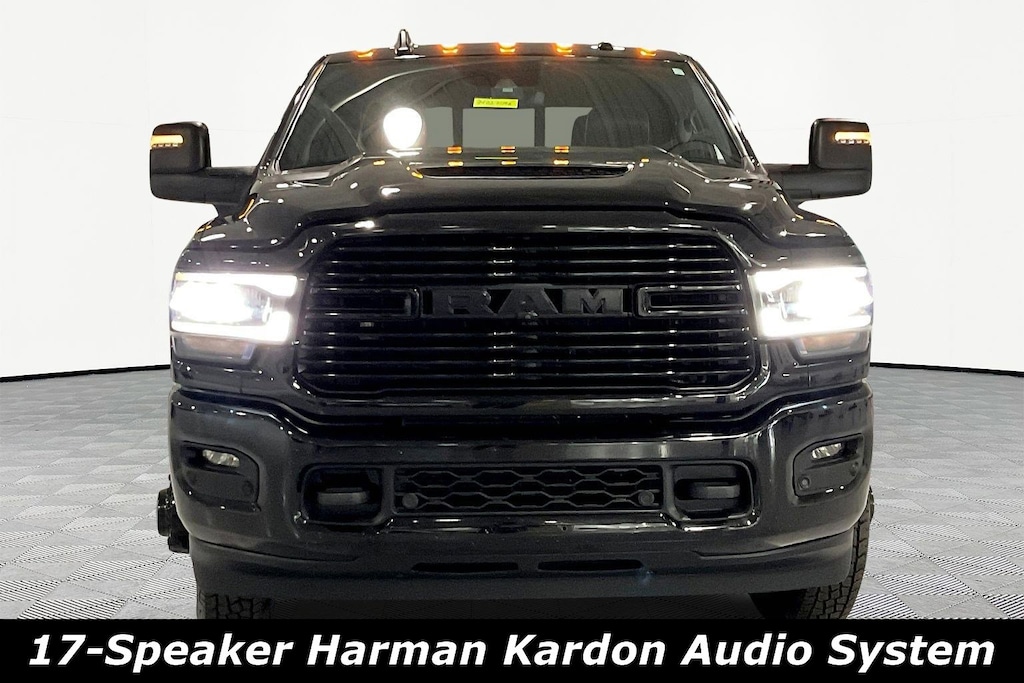 4WD/AWD, 12" Touchscreen Display, 17 Speaker harman/kardon Premium Sound, 18" x 8" Polished Aluminum Wheels, 2 Way Rear Headrest Seat, 220 Amp Alternator, 2nd Row In Floor Storage Bins, 3.73 Axle Ratio, 4 Way Front Headrests, 4-Wheel Disc Brakes, 4G LTE Wi-Fi Hot Spot, 50 Gallon Fuel Tank, 6000# Front Axle w/Hub Ext, 8.4" Touchscreen Display, ABS brakes, Active Noise Control System, Adaptive Cruise Control w/Stop, Adaptive Steering System, Air Conditioning, Alexa Built-In, All R1 High Radios, All Radio Equipped Vehicles, AM/FM radio: SiriusXM with 360L, Apple CarPlay, Apple CarPlay/Android Auto, Auto Adjust In Reverse Exterior Mirrors, Auto Dimming Exterior Passenger Mirror, Auto High Beam Headlamp Control, Auto Level Rear Air Suspension, Auto Power-Folding Mirrors, Auto-Dimming Exterior Mirrors, Auto-dimming Rear-View mirror, Automatic temperature control, Black Exterior Truck Badging, Black Headlamp Bezels, Black Interior Accents, Black RAM Head Tailgate Badge, Black Tail Lamp Bezels, Black Wheel Center Hub, Blind Spot & Cross Path Detection, Body Color Grille Surround, Box & Rear Fender Clearance Lamps, Brake assist, Bumpers: body-color, Center Hub, Chrome Exterior Mirrors, Clearance Lamps, Cluster 12" TFT Color Display, Compass, Connected Travel & Traffic Services, Connectivity - US/Canada, CTR Stop Lamp w/Cargo View Camera, Dash Pass Thru Wire Circuits, Delay-off headlights, Digital Rearview Mirror, Disassociated Touchscreen Display, Driver door bin, Driver vanity mirror, Dual front impact airbags, Dual front side impact airbags, Dual Rear Wheels, Electronic Stability Control, Electronically Controlled Throttle, Exterior Mirrors Courtesy Lamps, Exterior Mirrors w/Heating Element, Exterior Mirrors w/Memory, Exterior Mirrors w/Supplemental Signals, Foam Bottle Insert (Door Trim Panel), Folding Flat Load Floor Storage, For Details Visit DriveUconnect.com, Forward & Reverse Utility Lights, Front anti-roll bar, Front Center Armrest w/Storage, Front dual zone A/C, Front LED Fog Lamps, Front Seat Back Map Pockets, Full Speed Forward Collision Warning Plus, Fully automatic headlights, Garage door transmitter, Global Telematics Box Module (TBM), Gloss Black Grille Billets/Accents, Google Android Auto, GPS Antenna Input, GPS Navigation, HD Radio, Heated door mirrors, Heated Front Seats, Heated front seats, Heated Second Row Seats, Heated Steering Wheel, Heavy Duty Snow Plow Prep Group, High Back Seats, I/P Mounted Auxiliary Switches, Illuminated entry, Integrated Center Stack Radio, Integrated Voice Command w/Bluetooth, Lane Keep Assist, Laramie Level B Equipment Group, Leather steering wheel, Leather Trim 40/20/40 Bench Seat, LED Reflector Headlamps, LED Tail Lamps, Low tire pressure warning, Manufacturer's Statement of Origin, Mirror Running Lights, MOPAR Front & Rear Rubber Floor Mats, MOPAR Spray In Bedliner, Night Edition, Occupant sensing airbag, Off-Road Information Pages, Overhead airbag, Painted Flat Cab-Length Side Steps, Panic alarm, ParkSense Front/Rear Park Assist System, ParkView Rear Back-Up Camera, Passenger door bin, Power 8-Way Adjustable Passenger Seat, Power Adjust 8-Way Driver Seat, Power Adjust Mirrors, Power Adjustable Pedals w/Memory, Power door mirrors, Power driver seat, Power Heat Fold Memory Telescopic Mirrors, Power passenger seat, Power steering, Power Sunroof, Power Telescoping Mirrors, Power windows, Power-Adjustable Convex Aux Mirrors, Quick Order Package 2HH Laramie, Radio data system, Radio: Uconnect 5 Nav w/12.0" Display, Radio: Uconnect 5 Nav w/8.4" Display, Rain Sensitive Windshield Wipers, Rear 60/40 Folding Seat, Rear Power Sliding Window, Rear step bumper, Rear Window Defroster, Remote keyless entry, Remote Tailgate Release, Safety Group, Security system, Selectable Tire Fill Alert, SiriusXM Radio Service, SiriusXM w/360L, Speed control, Split folding rear seat, Sport Performance Hood, Steering wheel mounted audio controls, Surround View Camera System, Tachometer, Tilt steering wheel, Tip St