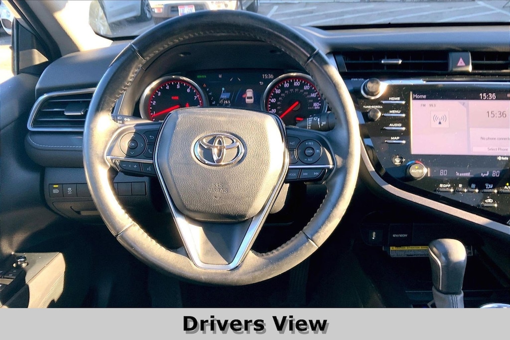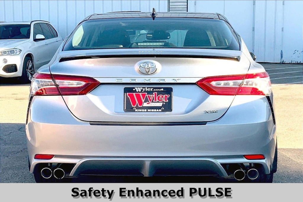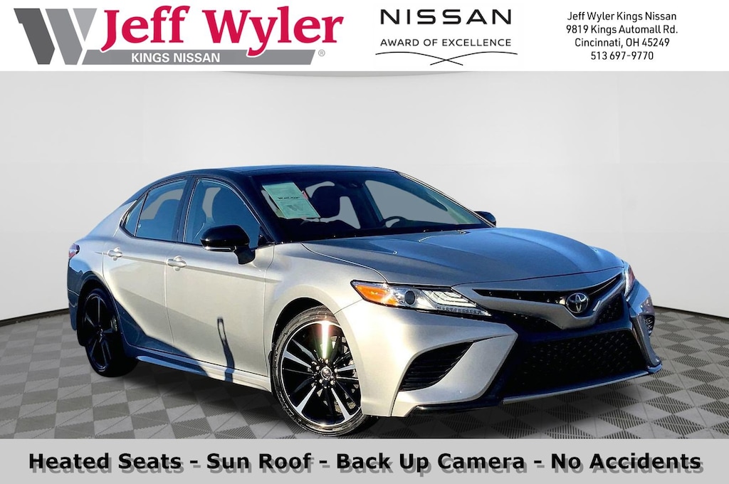 Jeff Wyler Kings Nissan is pumped up to offer this fantastic 2020 Toyota Camry XSE in Silver. Well equipped with: 4-Wheel Disc Brakes, 6 Speakers, ABS brakes, Air Conditioning, Alloy wheels, AM/FM radio: SiriusXM, Apple CarPlay/Android Auto, Auto High-beam Headlights, Auto-dimming Rear-View mirror, Automatic temperature control, Brake assist, Bumpers: body-color, CD player, Compass, Delay-off headlights, Driver door bin, Driver vanity mirror, Dual front impact airbags, Dual front side impact airbags, Electronic Stability Control, Emergency communication system: Safety Connect with 1-year trial, Exterior Parking Camera Rear, Four wheel independent suspension, Front anti-roll bar, Front Bucket Seats, Front Center Armrest, Front dual zone A/C, Front reading lights, Fully automatic headlights, Garage door transmitter: HomeLink, Heated door mirrors, Heated front seats, Illuminated entry, Knee airbag, Leather Seat Trim, Leather Shift Knob, Low tire pressure warning, Multi-Stage Heated Front Bucket Seats, Occupant sensing airbag, Outside temperature display, Overhead airbag, Overhead console, Panic alarm, Passenger door bin, Passenger vanity mirror, Power door mirrors, Power driver seat, Power passenger seat, Power steering, Power windows, Radio data system, Radio: AM/FM/HD Audio Plus, Rear anti-roll bar, Rear reading lights, Rear seat center armrest, Rear side impact airbag, Rear window defroster, Remote keyless entry, Security system, Speed control, Speed-sensing steering, Split folding rear seat, Spoiler, Sport steering wheel, Steering wheel mounted audio controls, Tachometer, Telescoping steering wheel, Tilt steering wheel, Traction control, Trip computer, Turn signal indicator mirrors, Variably intermittent wipers, and Wheels: 8.0J x 19" Black Machined-Finish Alloy.Ask about available certifications.