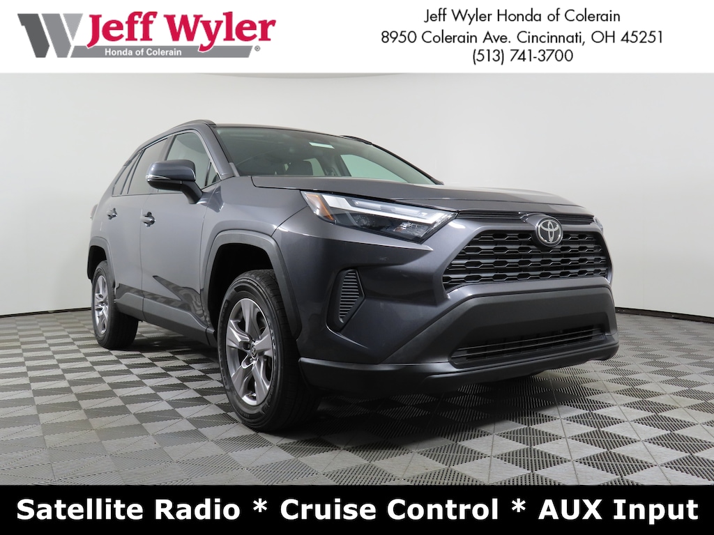 Jeff Wyler Honda of Colerain is delighted to offer this terrific 2023 Toyota RAV4 XLE in Magnetic Gray Metallic. Well equipped with: 4-Wheel Disc Brakes, 6 Speakers, ABS brakes, Air Conditioning, Alloy wheels, AM/FM radio: SiriusXM, Auto High-beam Headlights, Automatic temperature control, Axle Ratio: 3.177, Brake assist, Bumpers: body-color, Delay-off headlights, Driver door bin, Driver vanity mirror, Dual front impact airbags, Dual front side impact airbags, Electronic Stability Control, Emergency communication system: Safety Connect (10-year trial), Exterior Parking Camera Rear, Fabric Seat Trim, Four wheel independent suspension, Front anti-roll bar, Front Bucket Seats, Front Center Armrest, Front dual zone A/C, Front reading lights, Fully automatic headlights, Heated door mirrors, Illuminated entry, Knee airbag, Low tire pressure warning, Occupant sensing airbag, Outside temperature display, Overhead airbag, Overhead console, Panic alarm, Passenger door bin, Passenger vanity mirror, Power door mirrors, Power driver seat, Power steering, Power windows, Radio data system, Radio: AM/FM/XM Audio System, Rear anti-roll bar, Rear seat center armrest, Rear window defroster, Rear window wiper, Remote keyless entry, Speed control, Speed-sensing steering, Split folding rear seat, Spoiler, Steering wheel mounted audio controls, Tachometer, Telescoping steering wheel, Tilt steering wheel, Traction control, Trip computer, Turn signal indicator mirrors, Variably intermittent wipers, and Wheels: 17" 5-Spoke Silver Alloy.