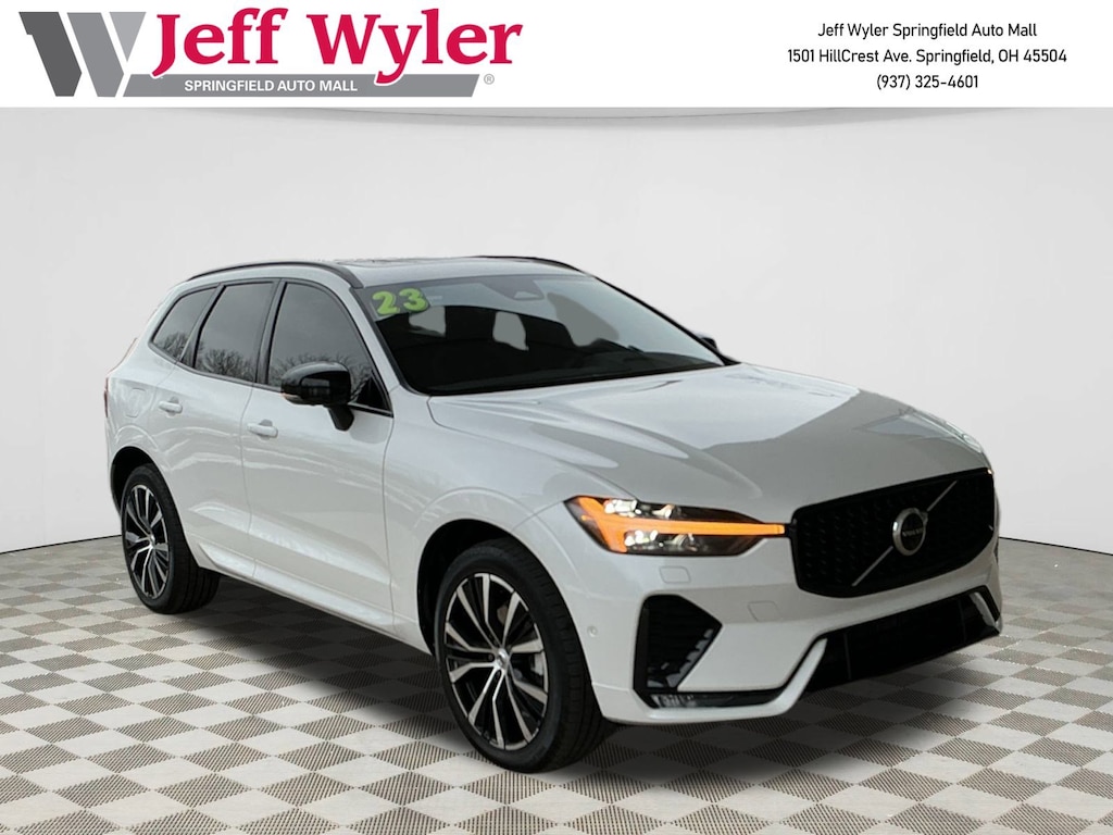 Jeff Wyler Springfield Auto Mall is very proud to offer this charming-looking 2023 Volvo XC60 B5 Plus Dark Theme in White. Well equipped with: 10 Speakers, 4-Wheel Disc Brakes, ABS brakes, Air Conditioning, Alloy wheels, AM/FM radio: SiriusXM, Anti-whiplash front head restraints, Apple CarPlay, Auto High-beam Headlights, Auto-dimming door mirrors, Auto-dimming Rear-View mirror, Automatic temperature control, Brake assist, Bumpers: body-color, Delay-off headlights, Driver door bin, Driver vanity mirror, Dual front impact airbags, Dual front side impact airbags, Electronic Stability Control, Emergency communication system: Volvo Cars App w/4 Year Subscription, Exterior Parking Camera Rear, Four wheel independent suspension, Front anti-roll bar, Front Bucket Seats, Front Center Armrest, Front dual zone A/C, Front fog lights, Front reading lights, Fully automatic headlights, Garage door transmitter: HomeLink, Genuine wood console insert, Genuine wood dashboard insert, Heated door mirrors, Heated Front Bucket Seats, Heated front seats, Illuminated entry, Knee airbag, Leather Shift Knob, Leather Upholstery, Low tire pressure warning, Memory seat, Occupant sensing airbag, Outside temperature display, Overhead airbag, Panic alarm, Passenger door bin, Passenger vanity mirror, Power door mirrors, Power driver seat, Power moonroof, Power passenger seat, Power steering, Power windows, Radio data system, Radio: High Performance Audio System, Rain sensing wipers, Rear anti-roll bar, Rear fog lights, Rear reading lights, Rear seat center armrest, Rear window defroster, Rear window wiper, Remote keyless entry, Security system, Speed control, Split folding rear seat, Spoiler, Steering wheel mounted audio controls, Tachometer, Telescoping steering wheel, Tilt steering wheel, Traction control, Trip computer, Turn signal indicator mirrors, Variably intermittent wipers, and Wheels: 19" 5-V Spoke Black Diamond Cut Alloy. Ask about available certifications. Used vehicles 10 years of age or newer with less than 100,000 miles are eligible for the Wyler Assurance Program, but eligible vehicles must pass our reconditioning process and multi-point inspection. Provided the vehicle passes inspection, vehicles will be eligible for the 6 month/6,000 mile limited warranty. The 6 month/6,000 mile limited warranty is NOT available on AS-IS vehicles, wholesale vehicles, lease buyback/pass-thru vehicles or un-inspected vehicles. Note that this program can also apply to vehicles where the remaining factory coverage is less than 6 months or 6,000 miles. Please check the Federal Trade Commission (FTC) Buyers guide on the vehicle for full details as to whether or not warranty coverage may apply. Contact Dealer for additional details. The Wyler Assurance 6 month/6,000 Mile limited warranty ends 6 months from the date of the Retail Purchase Agreement (BUYERS ORDER) or when the vehicle's odometer registers 6,000 additional miles to the mileage listed on the BUYERS ORDER, whichever comes first. Your Deductible - The warranty holder on your contract pays the first $100 of each covered repair.